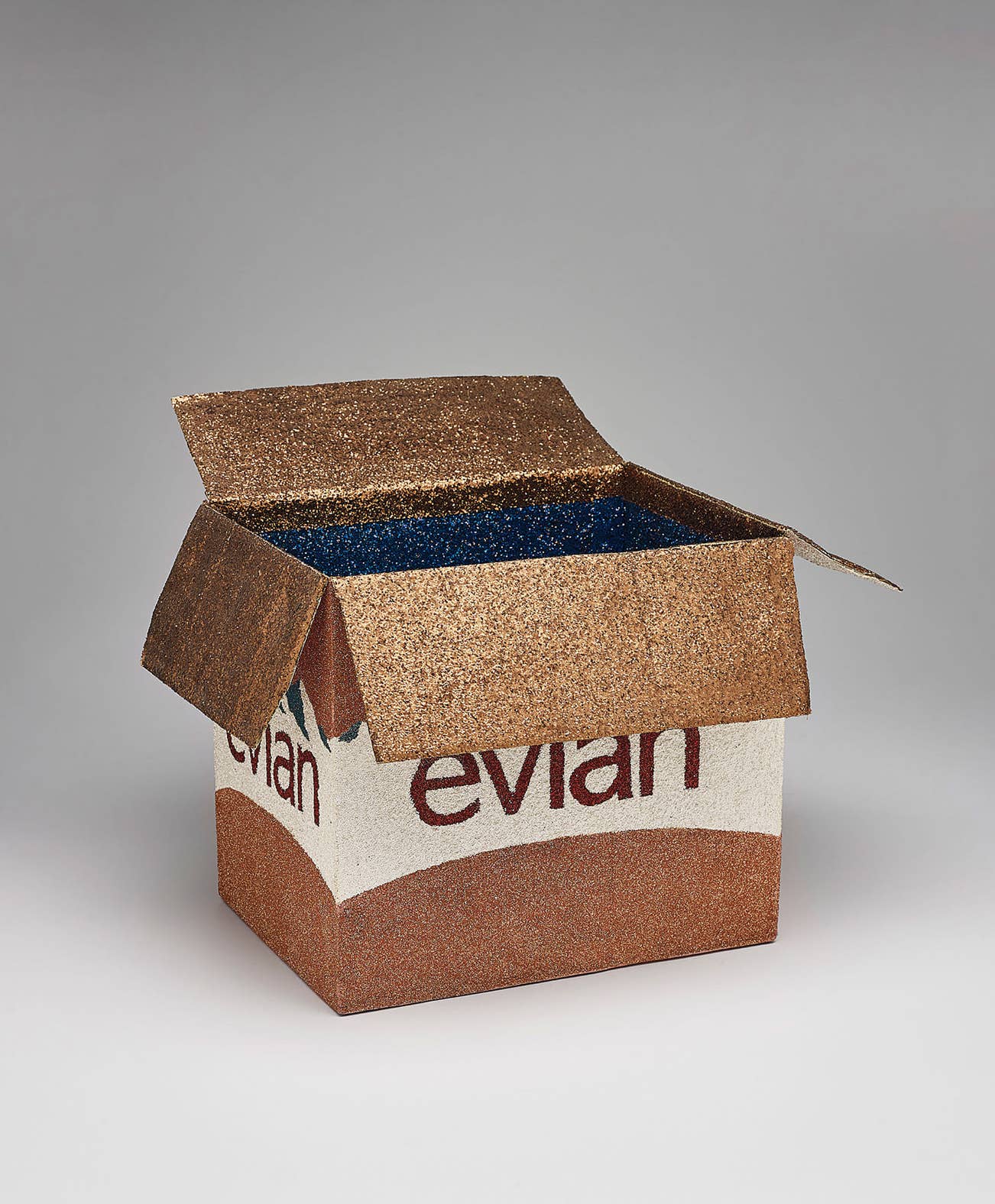 glitter and enamel paint on cardboard box