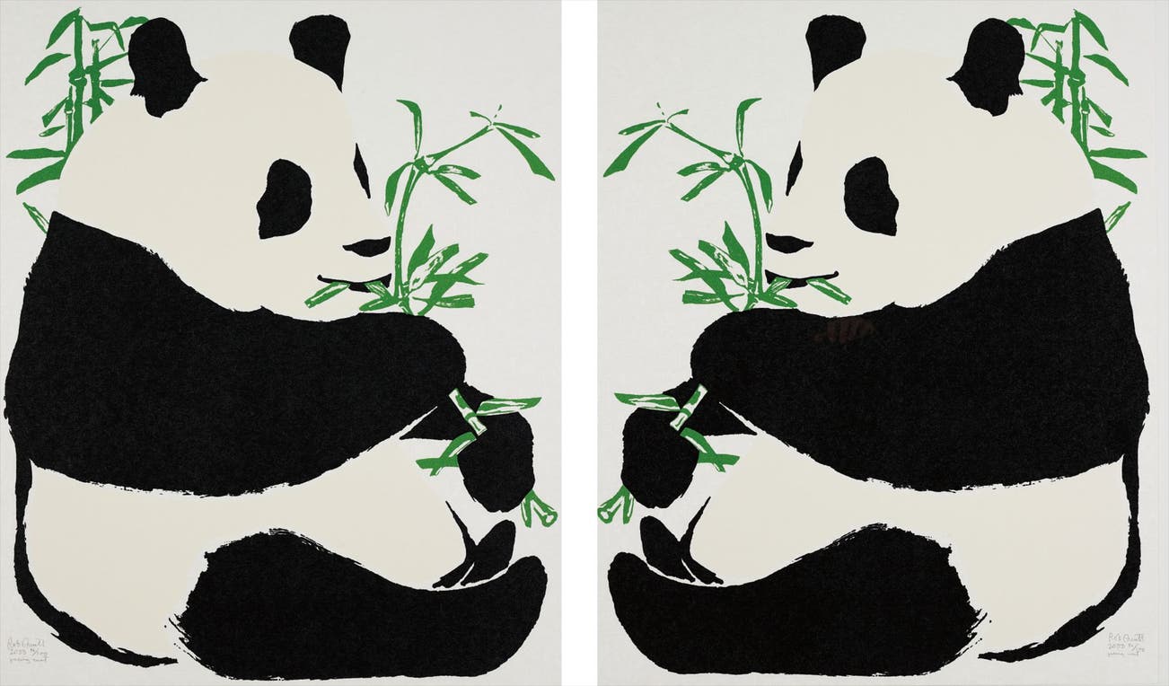 The complete set of two screenprints in colors with micronic mica chips, on Koshiji Japanese paper, the full sheets,