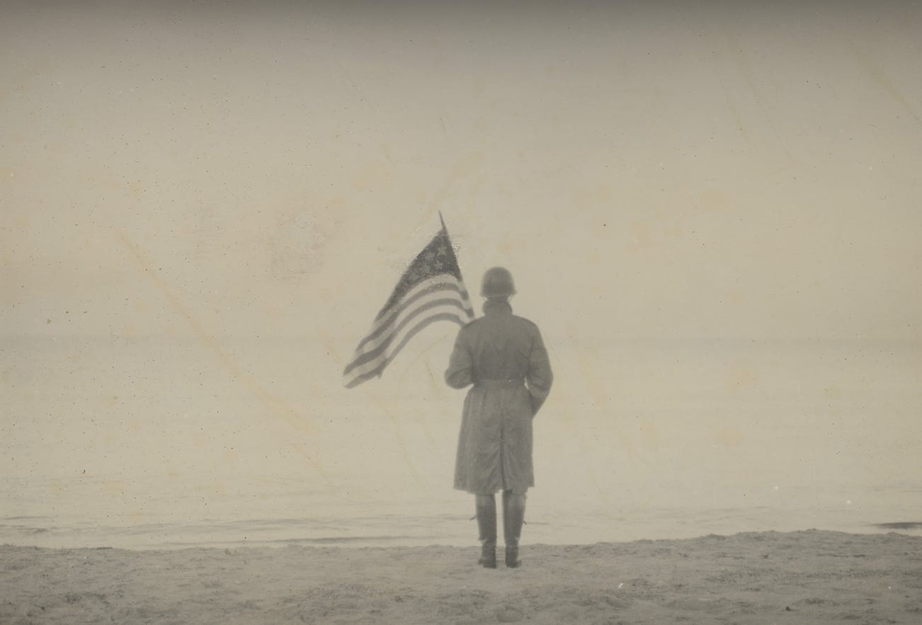 Credit stamp, 'Life Photo by Robert Capa' stamp and typed caption label on the verso.