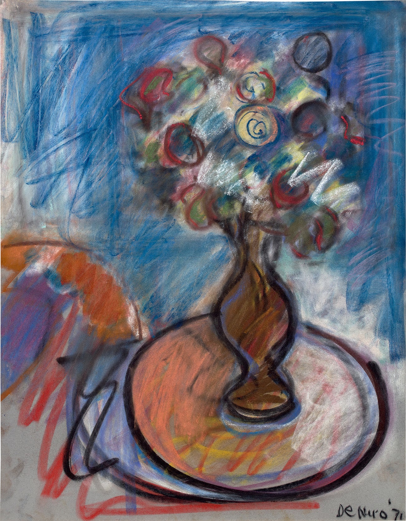 Pastel drawing on light blue wove paper, laid to heavy smooth wove paper.