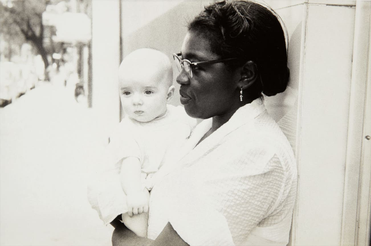 In 1955, after being awarded a Guggenheim Fellowship, Robert Frank set out to travel the United States, seeking ‘to portray Americans as they live at present. Their every day and their Sunday, their realism and dreams.’ The resulting body of work The Americans was published first in France in 1958 and then in the US the following year. Contrasting the powerful against the powerless, the project ‘signifies the kind of civilization born here and spreading elsewhere.’ Although Frank had travelled extensively in Europe and South America, he was not prepared for segregation in the American South; for him ‘that was the strongest and most unforgettable impression. The injustice to people who have another skin color.’ The present work Charleston, South Carolina shows a black nanny holding a white baby. ‘I found it extraordinary,’ Frank comments, ‘that whites would give their children to black women when they wouldn’t allow women to sit next to them in a drugstore. I did very few pictures that made a political point like this.’
