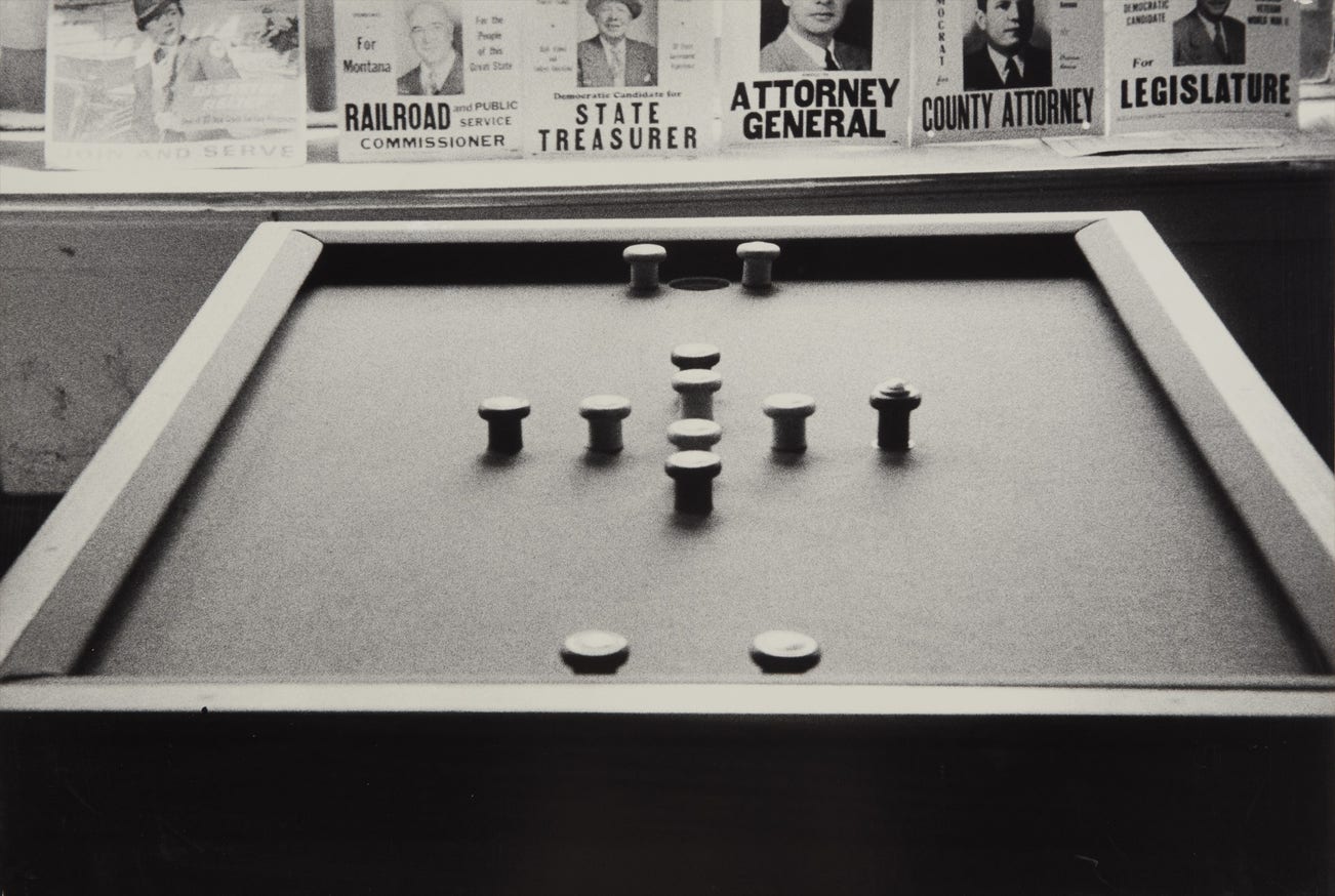 This large print of Luncheonette—Butte, Montana was shown in The Photographs of Robert Frank, the important exhibition of Frank’s work which opened at the Philadelphia Museum of Art in 1969 and traveled to four other venues through 1971. The exhibition celebrated the publication of the 1969 edition of The Americans by Aperture and was curated by Aperture’s Michael Hoffman, also an adjunct curator at the Museum. This was the largest exhibition of Frank’s work to date, and was drawn almost exclusively from The Americans. According to Frank authority Sarah Greenough, the exhibition was notable for the size and quality of the prints. She writes: “Printed by Frank and the photographer Sid Kaplan, these photographs were larger than those he had made for his 1962 exhibition at MoMA and even more lush. Because of their size, the graphic strength of these images became far more apparent, as details that were lost in the approximately 4-by-7-inch or 8-by-5-inch reproductions in the book assumed much greater prominence and authority and were often transformed into bold, abstract forms. In addition, the luminosity and the sense that light was emanating from within the images was greatly magnified” (Looking In: Robert Frank’s The Americans, p. 317).