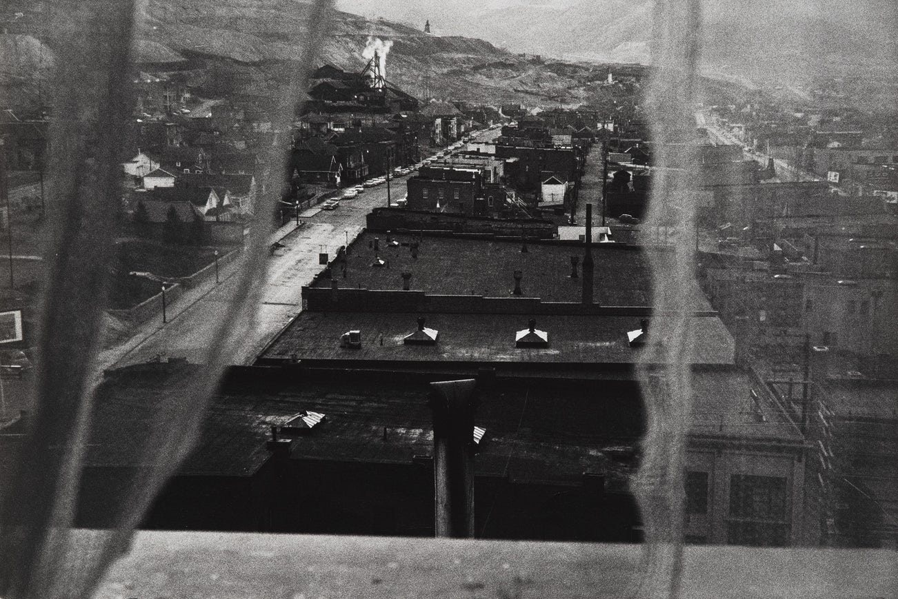 Robert Frank drove into Butte, Montana in May of 1956, after receiving word of the renewal of the Guggenheim Fellowship funding his project to create a photographic document of America. He traveled from San Francisco through Nevada and Utah, making photographs in each state that would be included in his final selection of images for The Americans, before heading north to Montana. Butte was, in its own way, a classic western town, home to one of the largest mineral mining operations in the world and with a rough-hewn reputation. While Frank may have had hopes of photographing mining operations in the area, as he had covered the automobile industry in Detroit, what ultimately inspired him were scenes that fell outside the industrial life of the town: a table game in a luncheonette; a woman and her children in their car; and the photograph offered here, taken from the window of the Hotel Finlen, which captures the rooftops of the town in mid-light with the vast expanse of the open-pit mine beyond. In his introduction to The Americans, Jack Kerouac wrote that Frank 'sucked a sad poem right out of America onto film, taking rank among the tragic poets of the world. To Robert Frank I now give this message: You got eyes' – an observation which resonates strongly with this image.