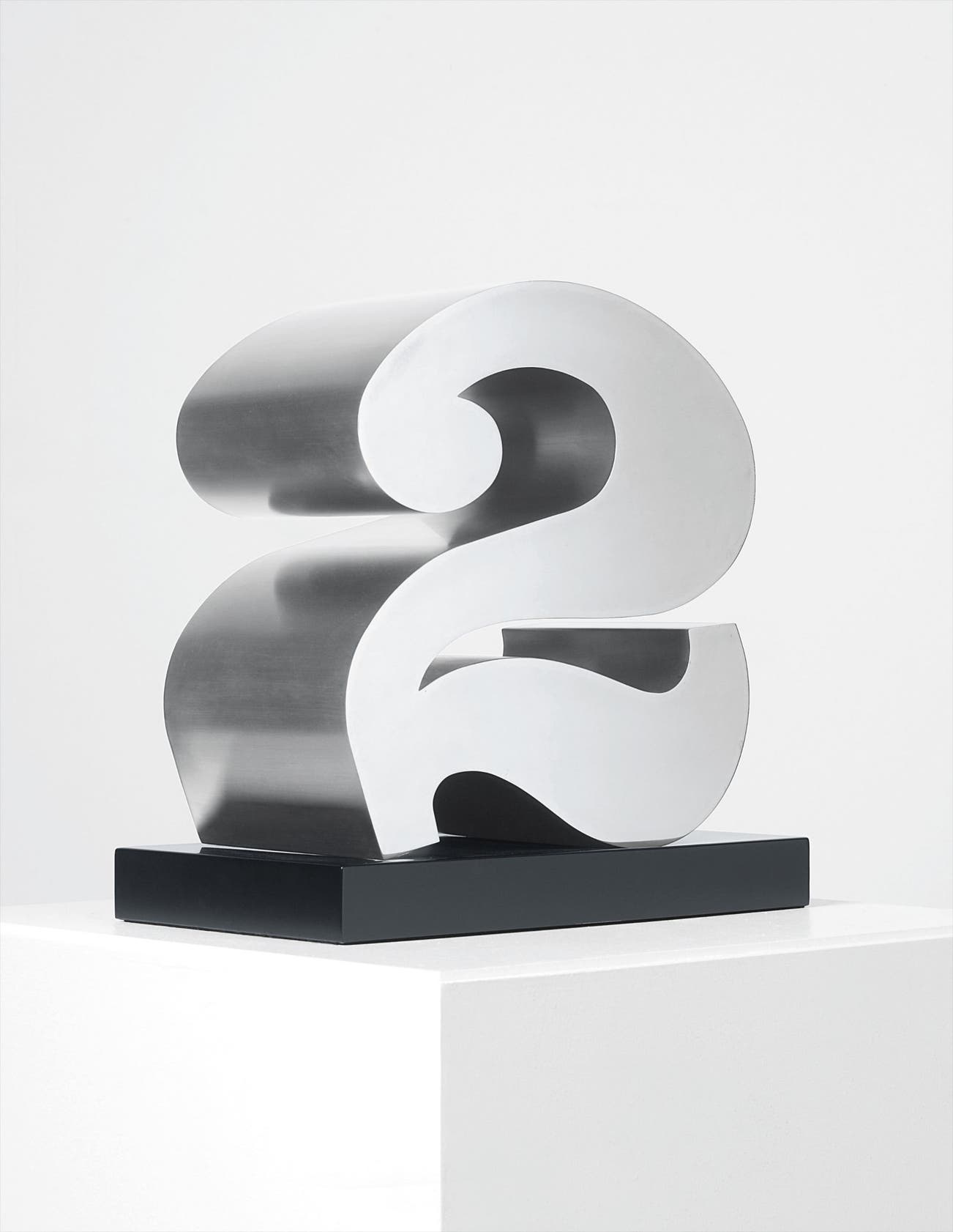 As a pioneer of the verbal-visual motif, Robert Indiana’s paintings and sculptures of numbers resonate with complex meaning, and have endured as one of his most important iconographic motifs. The works can be read as a quantity, a date, a sign, but also as purely aesthetic forms, rich with a poetic condensation of Indiana’s constant engagement with the symbolic, metaphorical and formal aspects of numbers. Indiana has emphasised that each number has a specific personal and allegorical resonance, acting as either autobiographical landmarks for his own upbringing or as milestones in the cycle of life itself. For Indiana, the number one represents birth, the start of an ascendance through adolescence to maturity, ending with the number zero: death. Within this cycle, Stainless Steel Sculptures: Two is a monumental example of the special significance that the number two holds. Two is created from 1; from Adam came Eve, marrying union and separation. “You must be 2 to love” says Indiana, and the curving arc of the weighty sculpture suggests an immovable connective arm that loops around an ever-present companion. The number two is significant not just in its form - organically growing from 1, yet still anticipating the balanced curves of 3 – but in the magnitude of its allegorical importance to Indiana.