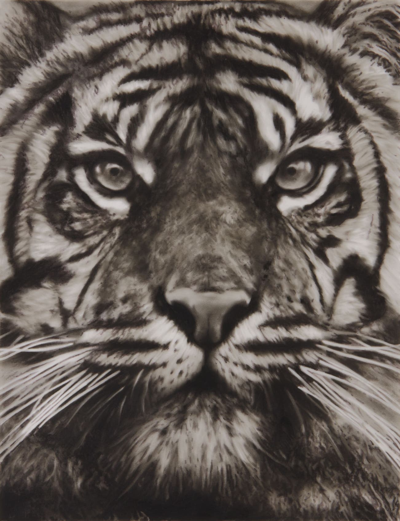 titled "STUDY TIGER HEAD 18" lower left; further signed and dated "Robert Longo 2013" lower right