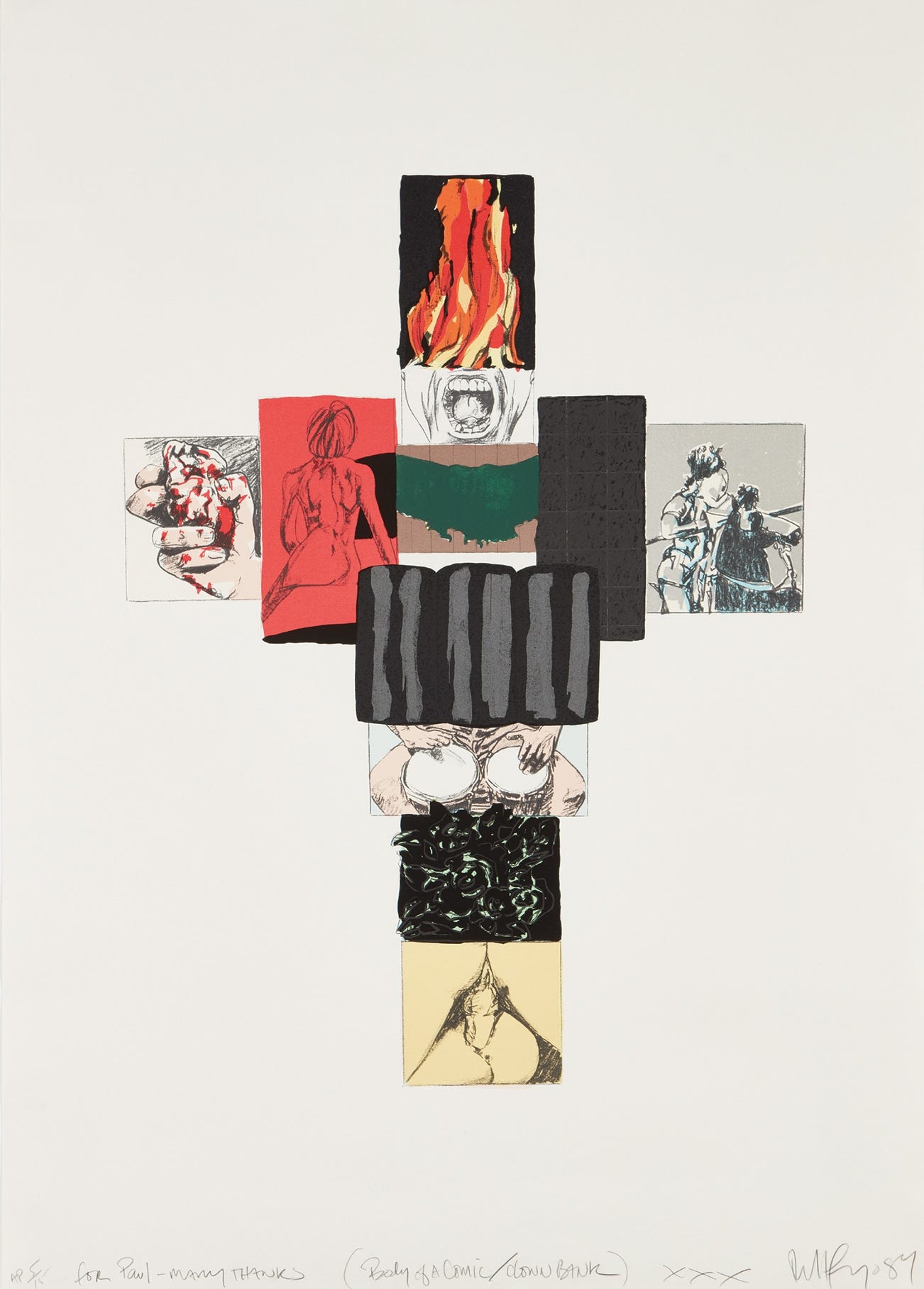 Signed, titled, dated, numbered 'AP 5/15' and dedicated 'for Paul Many Thanks XXX' in pencil (an artist's proof, the edition was 75), published by Brand X Editions, New York, framed.