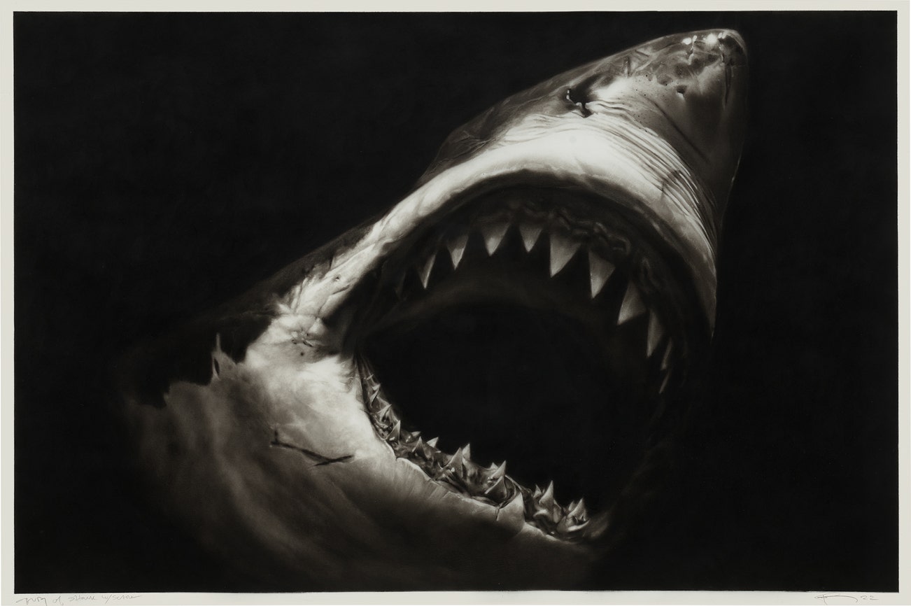 signed, titled and dated 'Study of Shark with Scar Robert Longo 22' lower margin