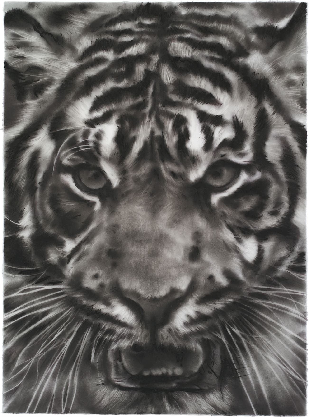 Signed and dated ‘Robert Longo 11’ lower right; titled ‘Study of Tiger Head 4B’ lower left.