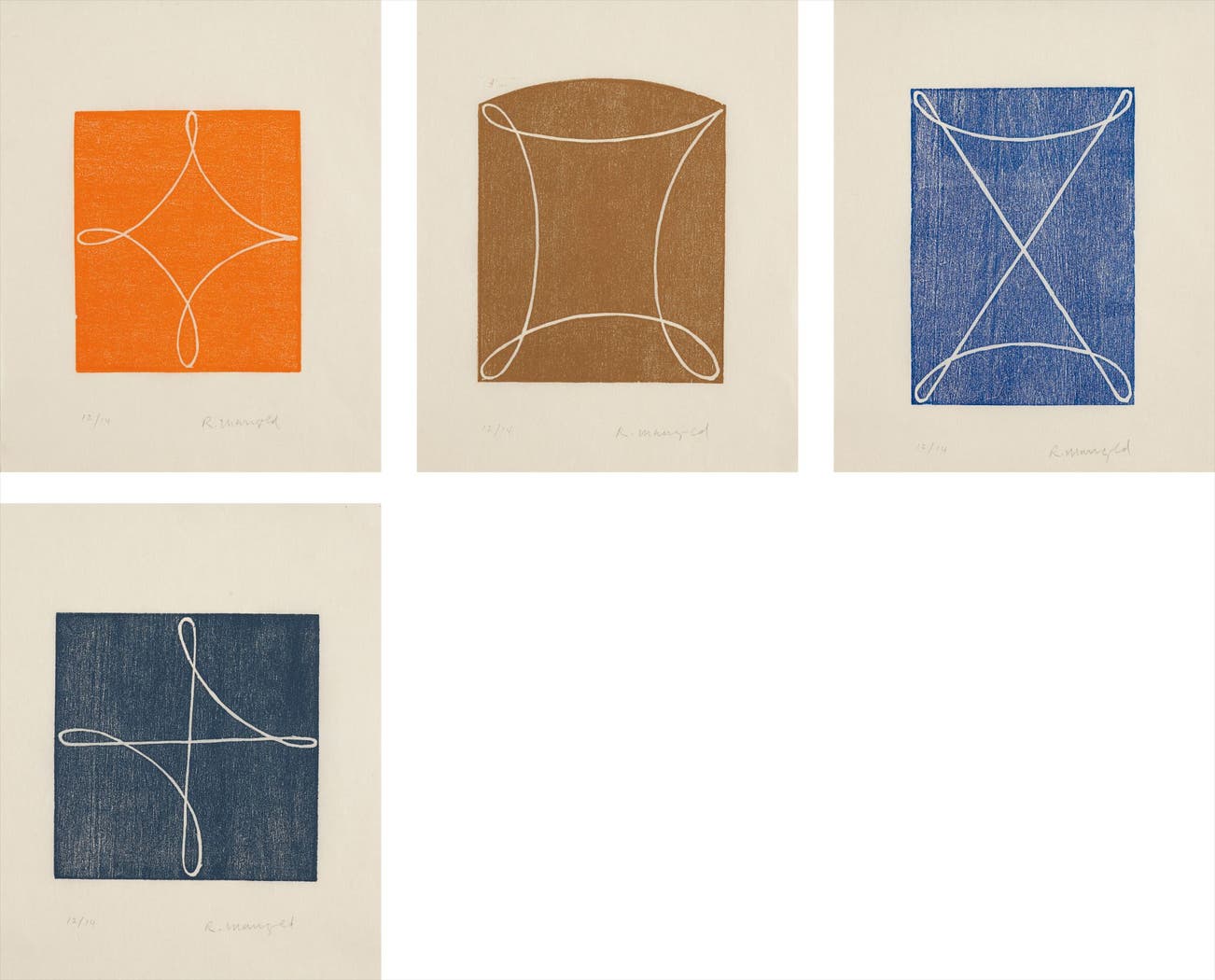 The complete set of four woodcuts in colors, on Japanese Mulberry paper, with full margins,
