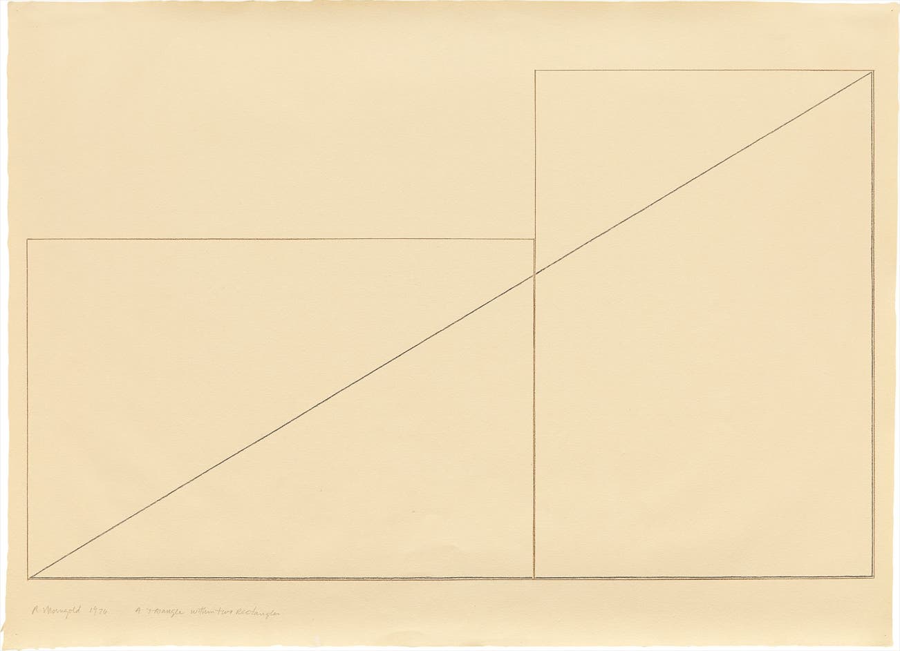 Signed, titled and dated "R. Mangold 1976 A Triangle within two Rectangles" lower left.