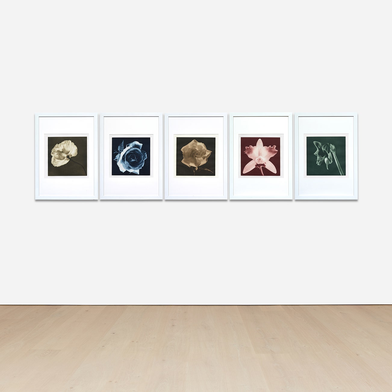 Selected Images of Flowers: Blue Rose, Sepia Orchid, Green Amaryllis, Green Poppy, and Dark Sepia Rose