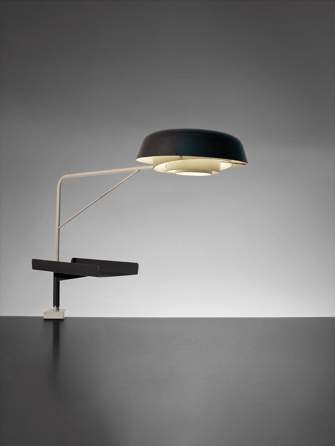 Rare pivoting desk lamp and paper tray