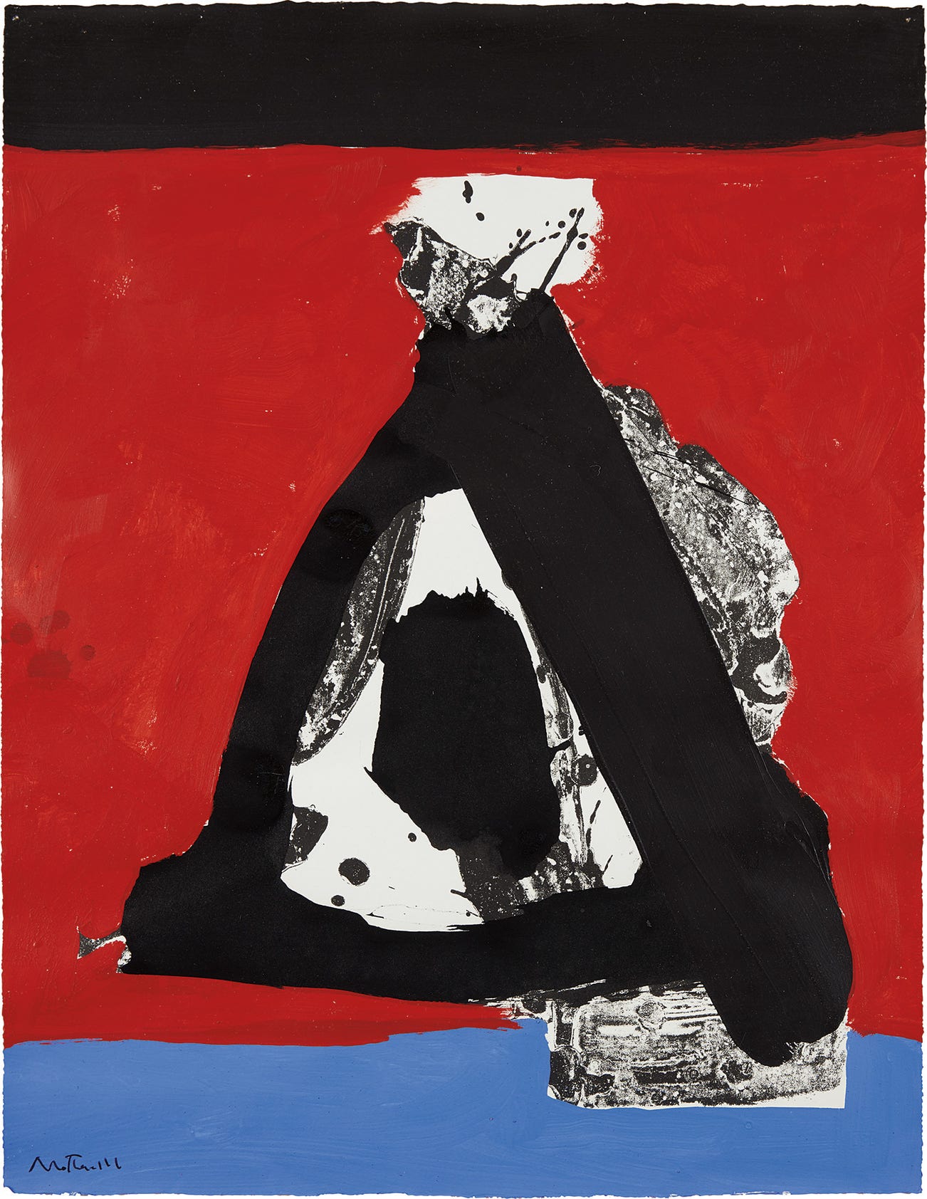 During an over five-decade-long career, Motherwell created a large and powerful body of varied work that includes paintings, drawings, prints and collages. Motherwell's work is most generally characterized by simple shapes, broad color contrasts and a dynamic interplay between restrained and gestural brushstrokes. Above all, it demonstrates his approach to art-making as a response to the complexity of lived, and importantly felt, experience.