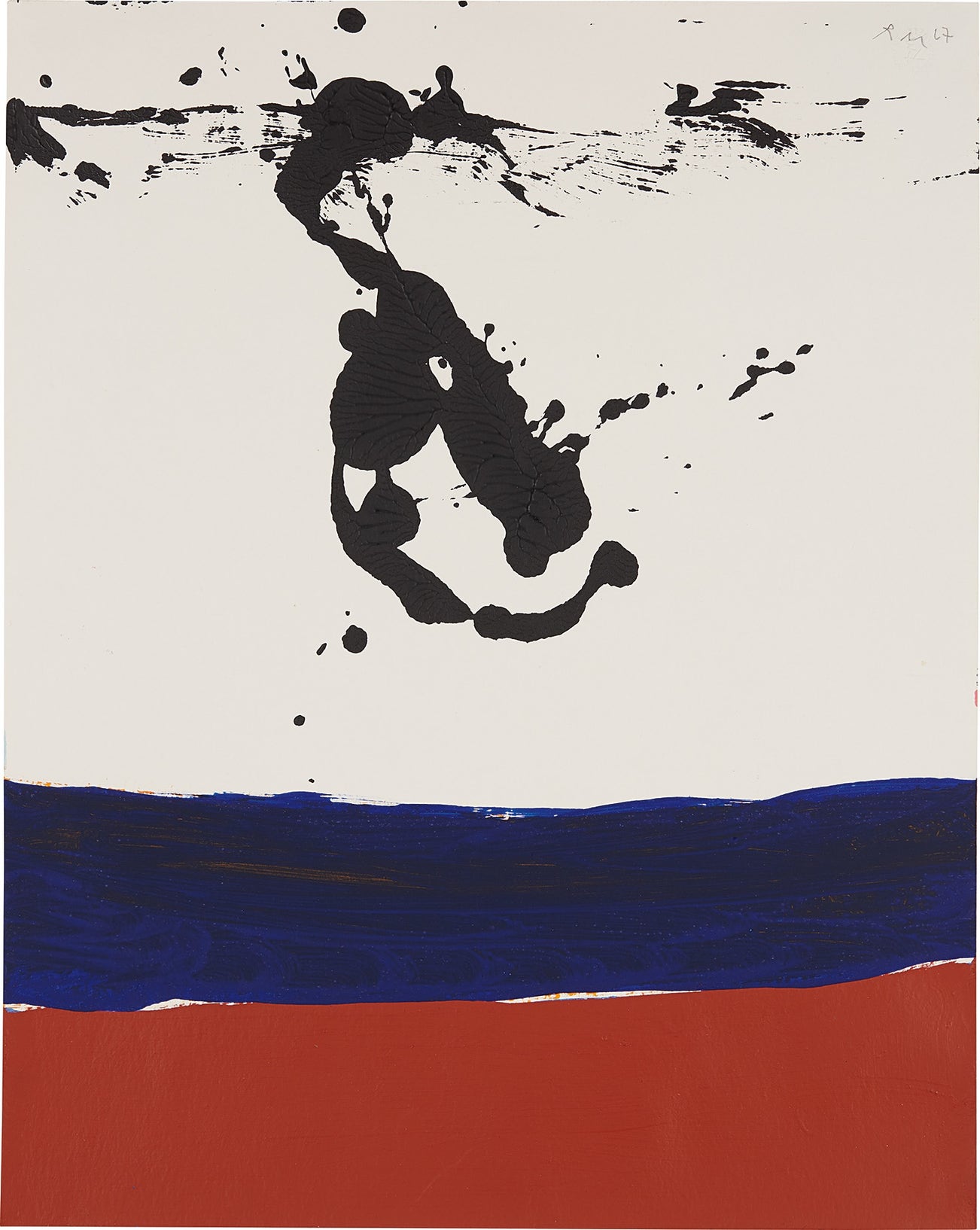 American | B. 1915 D. 1991One of the youngest proponents of the Abstract Expressionist movement, Robert Motherwell rose to critical acclaim with his first solo exhibition at Peggy Guggenheim's Art of This Century gallery in 1944. Not only was Motherwell one of the major practicing Abstract Expressionist artists, he was, in fact, the main intellectual driving force within the movement—corralling fellow New York painters such as Jackson Pollock, Willem de Kooning, Hans Hoffman and William Baziotes into his circle. Motherwell later coined the term the "New York School", a designation synonymous to Abstract Expressionism that loosely refers to a wide variety of non-objective work produced in New York between 1940 and 1960.