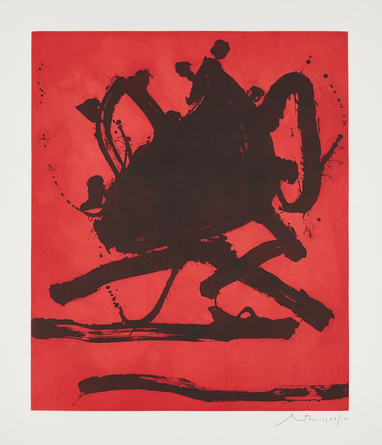 American | B. 1915 D. 1991One of the youngest proponents of the Abstract Expressionist movement, Robert Motherwell rose to critical acclaim with his first solo exhibition at Peggy Guggenheim's Art of This Century gallery in 1944. Not only was Motherwell one of the major practicing Abstract Expressionist artists, he was, in fact, the main intellectual driving force within the movement—corralling fellow New York painters such as Jackson Pollock, Willem de Kooning, Hans Hoffman and William Baziotes into his circle. Motherwell later coined the term the "New York School", a designation synonymous to Abstract Expressionism that loosely refers to a wide variety of non-objective work produced in New York between 1940 and 1960.