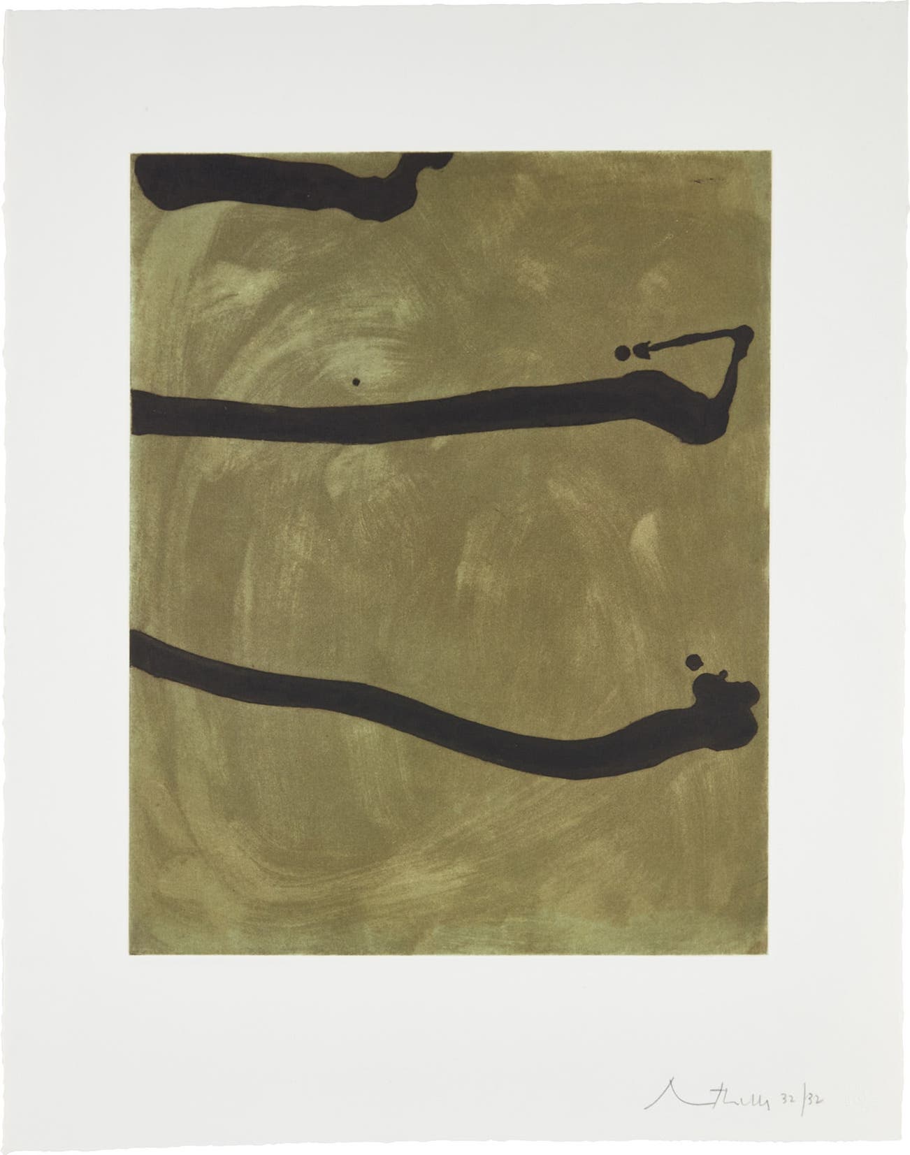 American | B. 1915 D. 1991One of the youngest proponents of the Abstract Expressionist movement, Robert Motherwell rose to critical acclaim with his first solo exhibition at Peggy Guggenheim's Art of This Century gallery in 1944. Not only was Motherwell one of the major practicing Abstract Expressionist artists, he was, in fact, the main intellectual driving force within the movement—corralling fellow New York painters such as Jackson Pollock, Willem de Kooning, Hans Hoffman and William Baziotes into his circle. Motherwell later coined the term the "New York School", a designation synonymous to Abstract Expressionism that loosely refers to a wide variety of non-objective work produced in New York between 1940 and 1960.