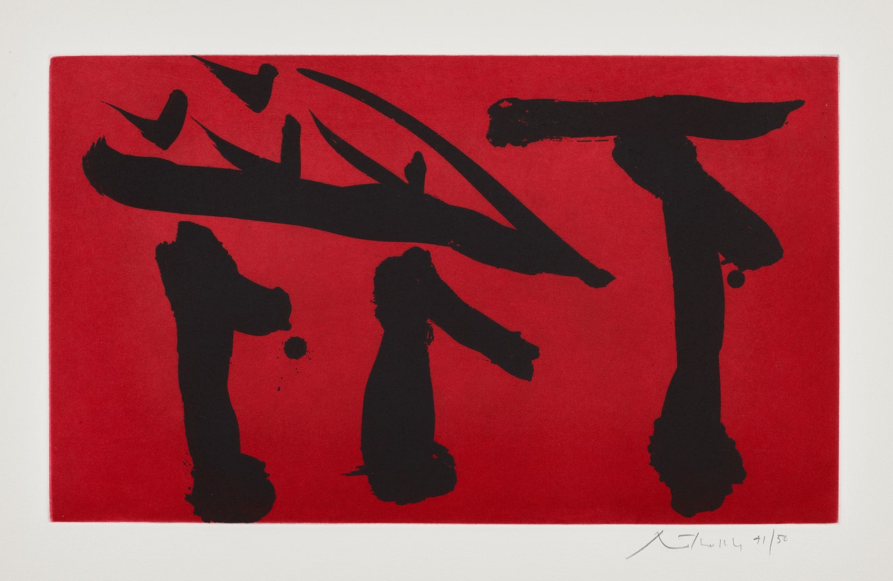 During an over five-decade-long career, Motherwell created a large and powerful body of varied work that includes paintings, drawings, prints and collages. Motherwell's work is most generally characterized by simple shapes, broad color contrasts and a dynamic interplay between restrained and gestural brushstrokes. Above all, it demonstrates his approach to art-making as a response to the complexity of lived, and importantly felt, experience.