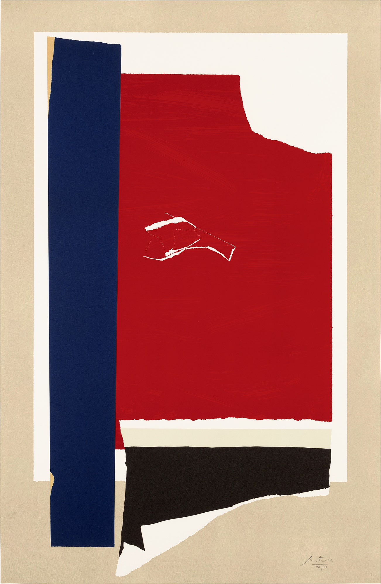 During an over five-decade-long career, Motherwell created a large and powerful body of varied work that includes paintings, drawings, prints and collages. Motherwell's work is most generally characterized by simple shapes, broad color contrasts and a dynamic interplay between restrained and gestural brushstrokes. Above all, it demonstrates his approach to art-making as a response to the complexity of lived, and importantly felt, experience.