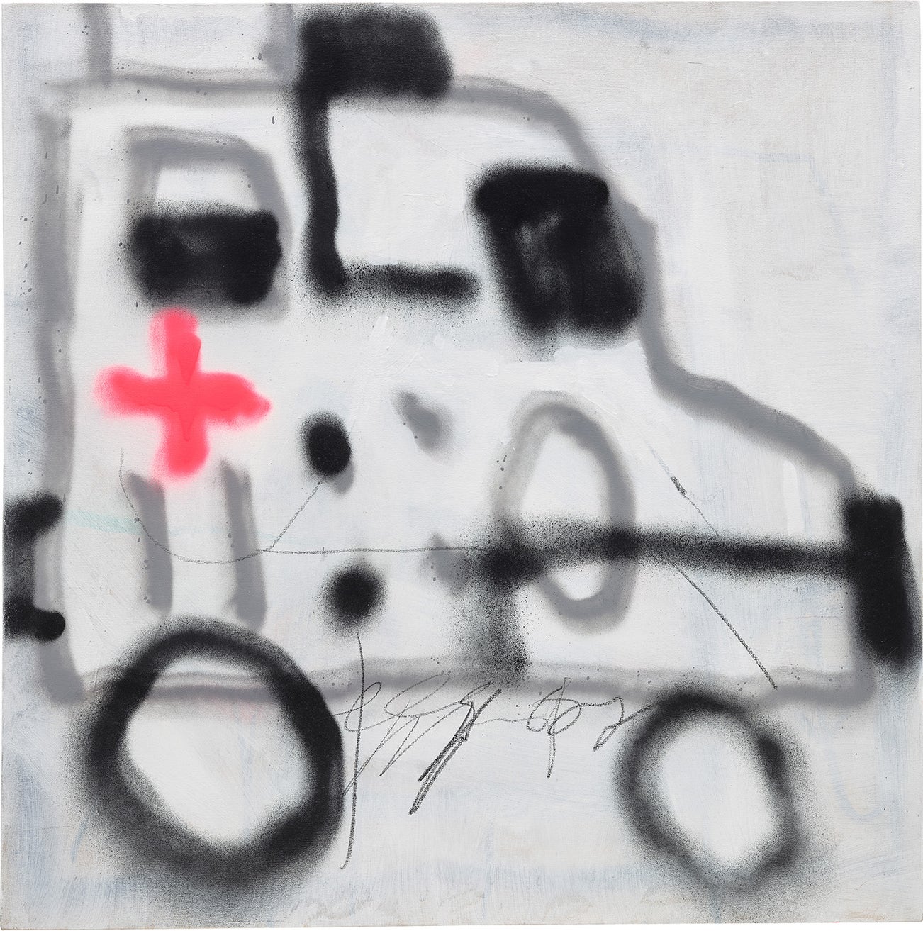 acrylic, spray paint and oil pastel on canvas