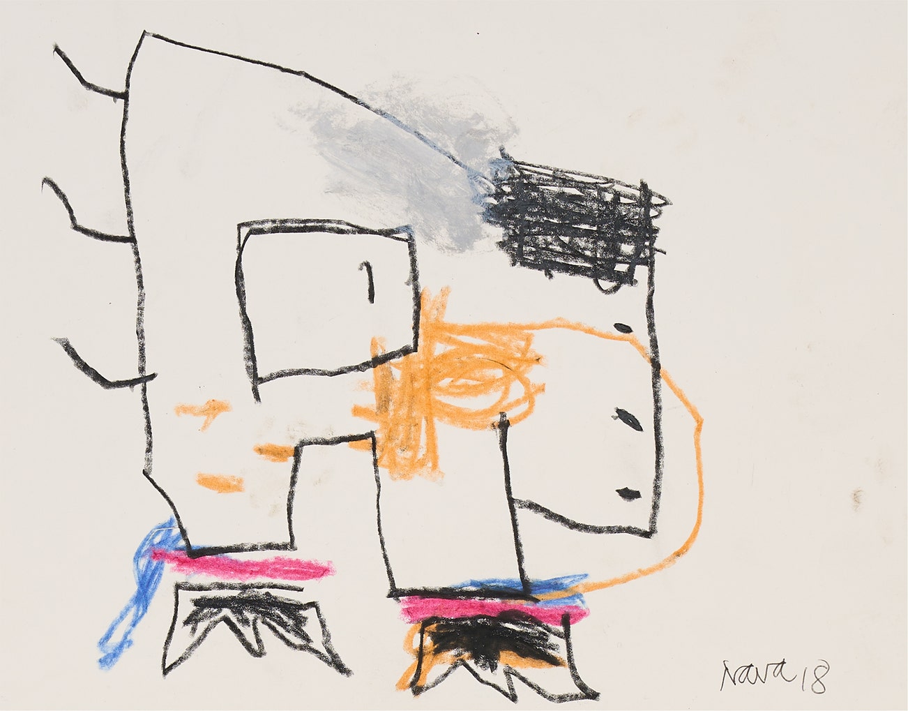 free-flowing hand, Nava recreates the innocent and unlearned art of childhood. His works are
