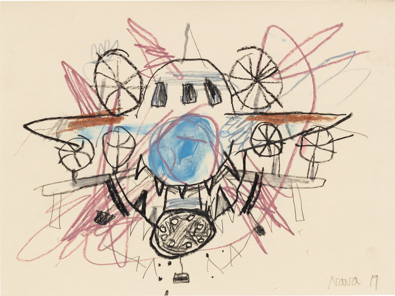 crayon, grease pencil and graphite on paper