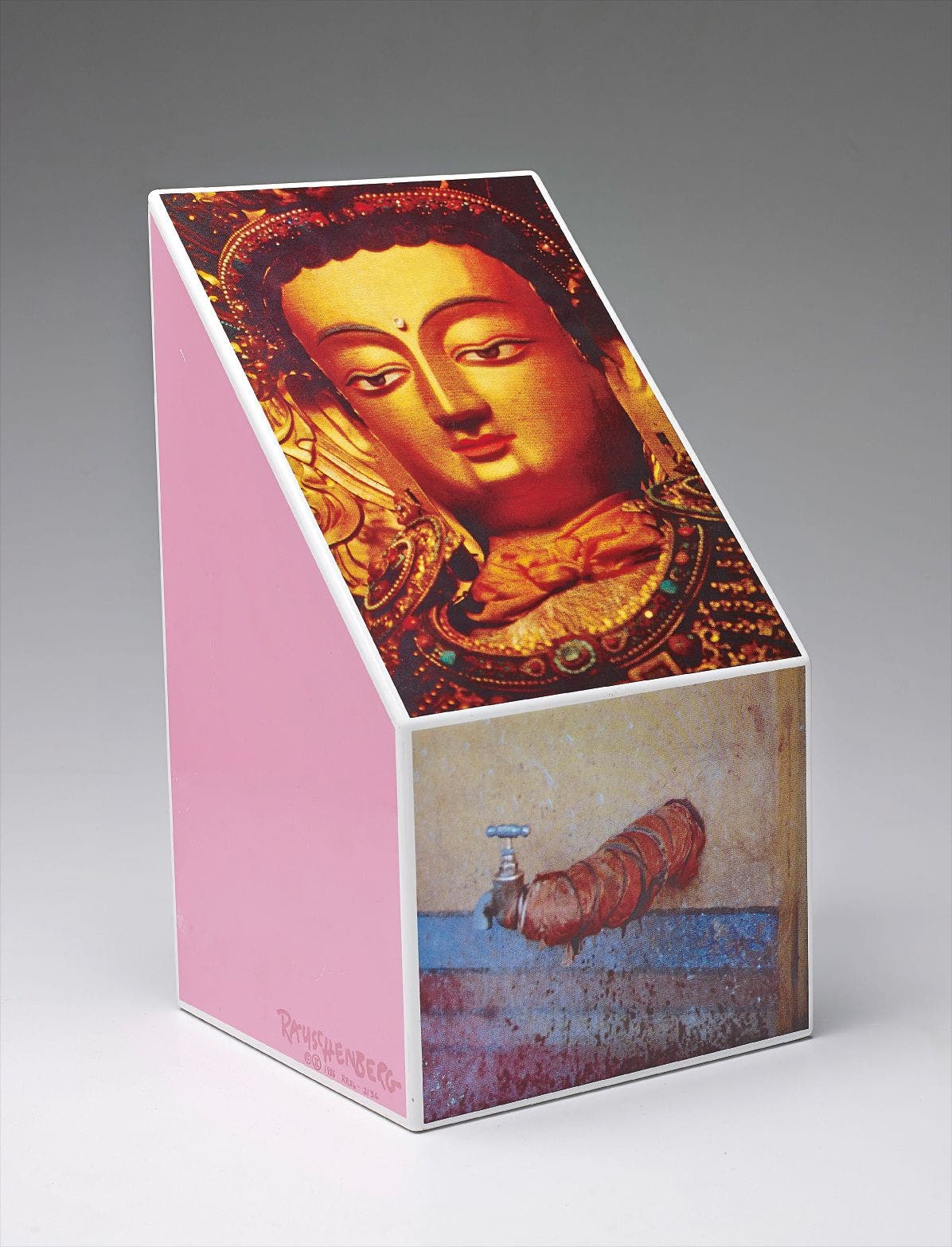 Powder-coated steel multiple with photoscreenprint decals in colours with hand-colouring and polyurethane.