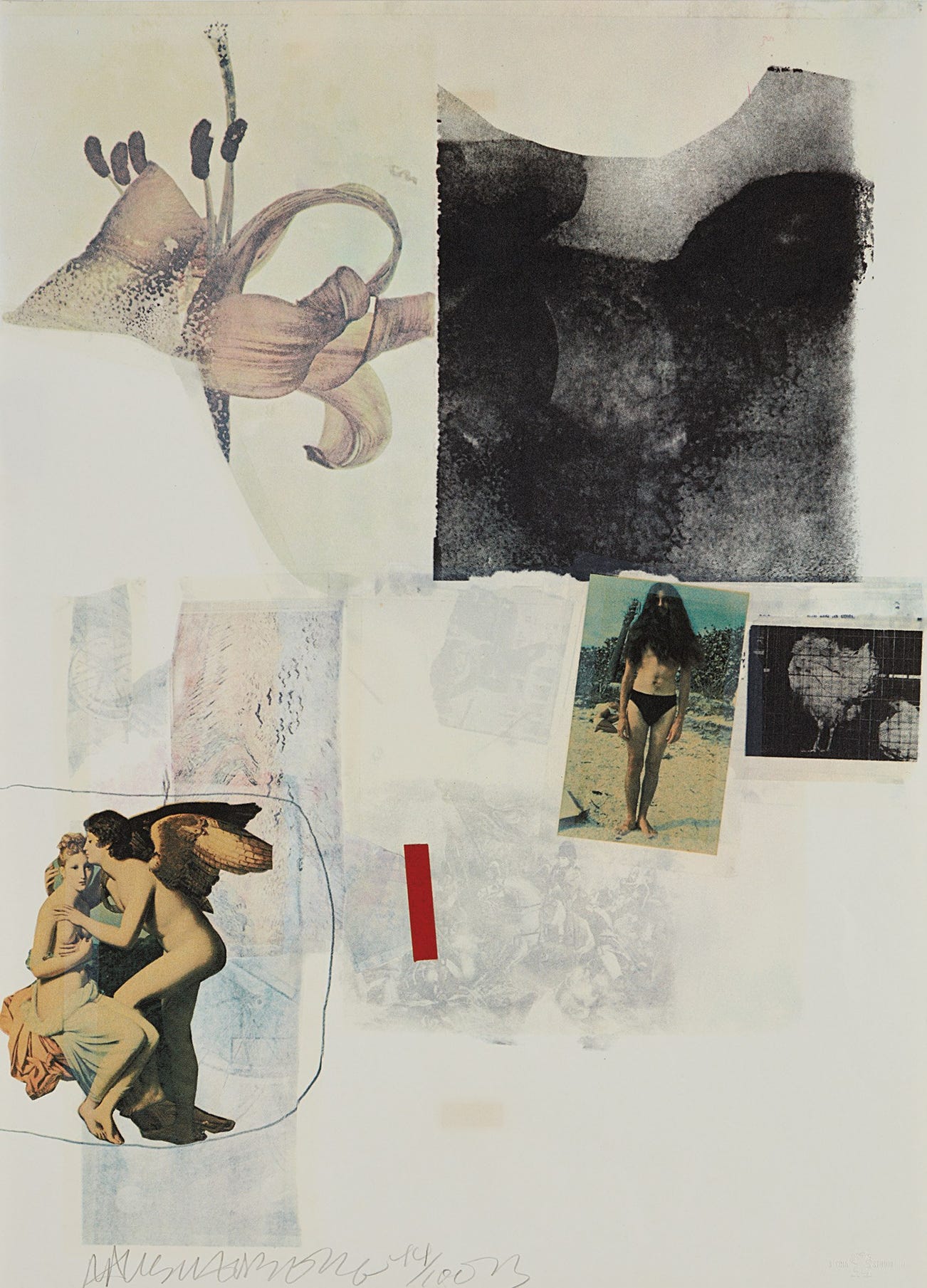Screenprint and collage in colors, on Rives BFK paper, the full sheet.
