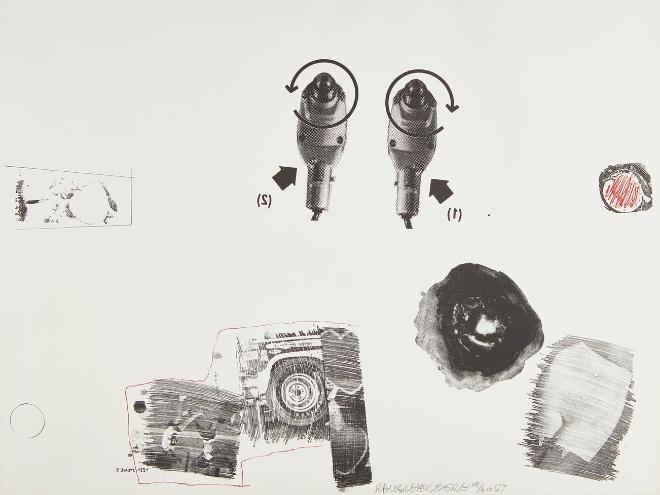 Lithograph in black and red, on Rives BFK paper, with full margins.