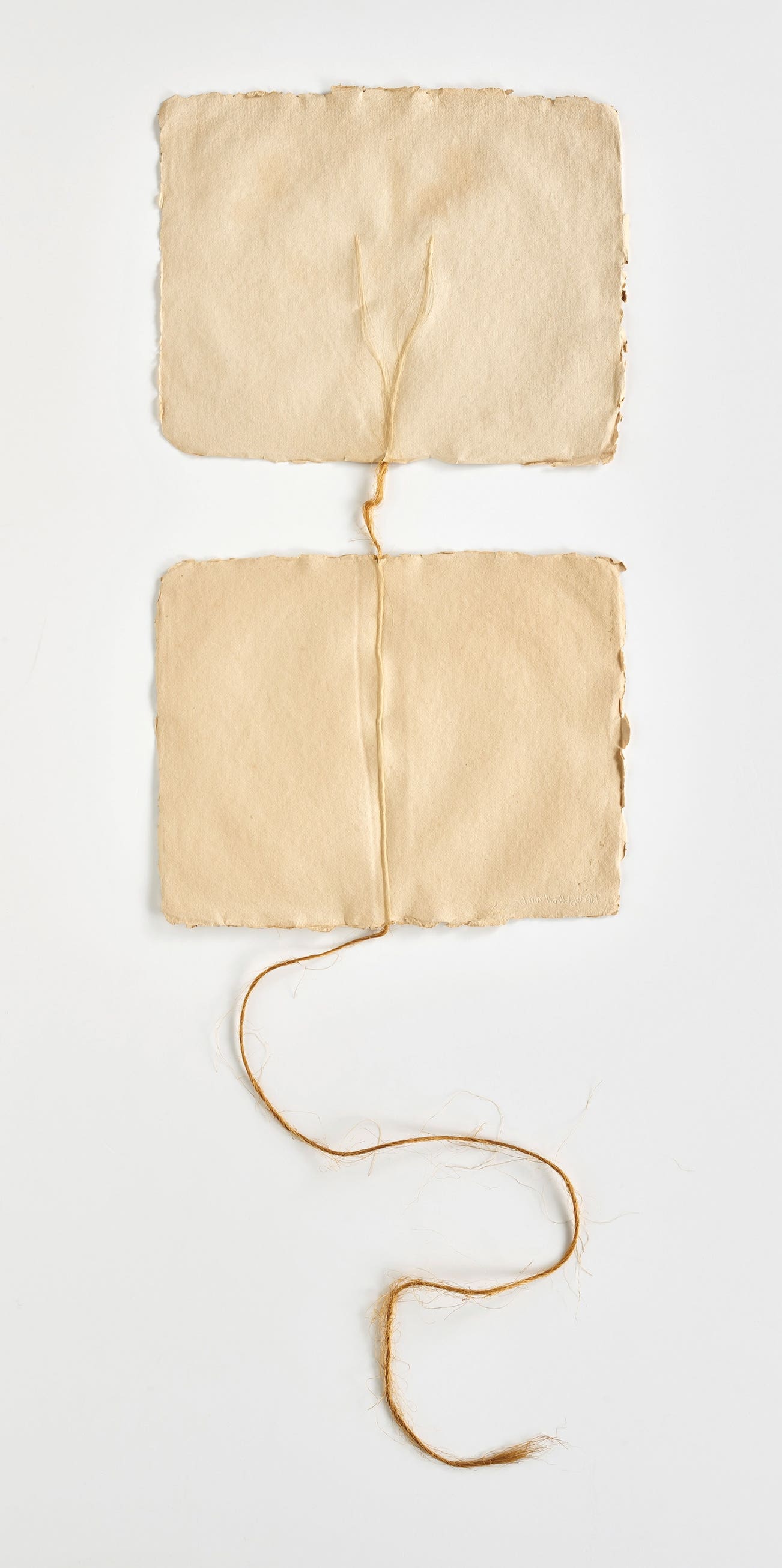 Two pieces of handmade paper with twine.