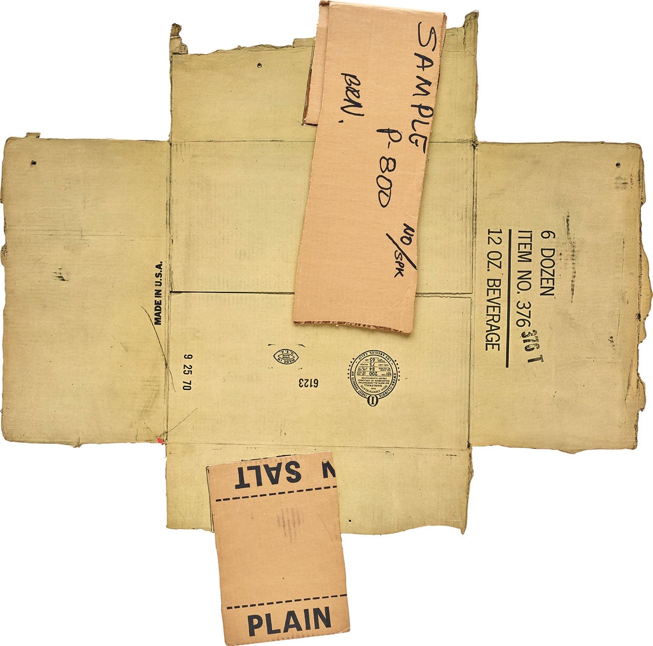 Collage print with corrugated cardboard, tape, photo offset lithograph, and screenprint.