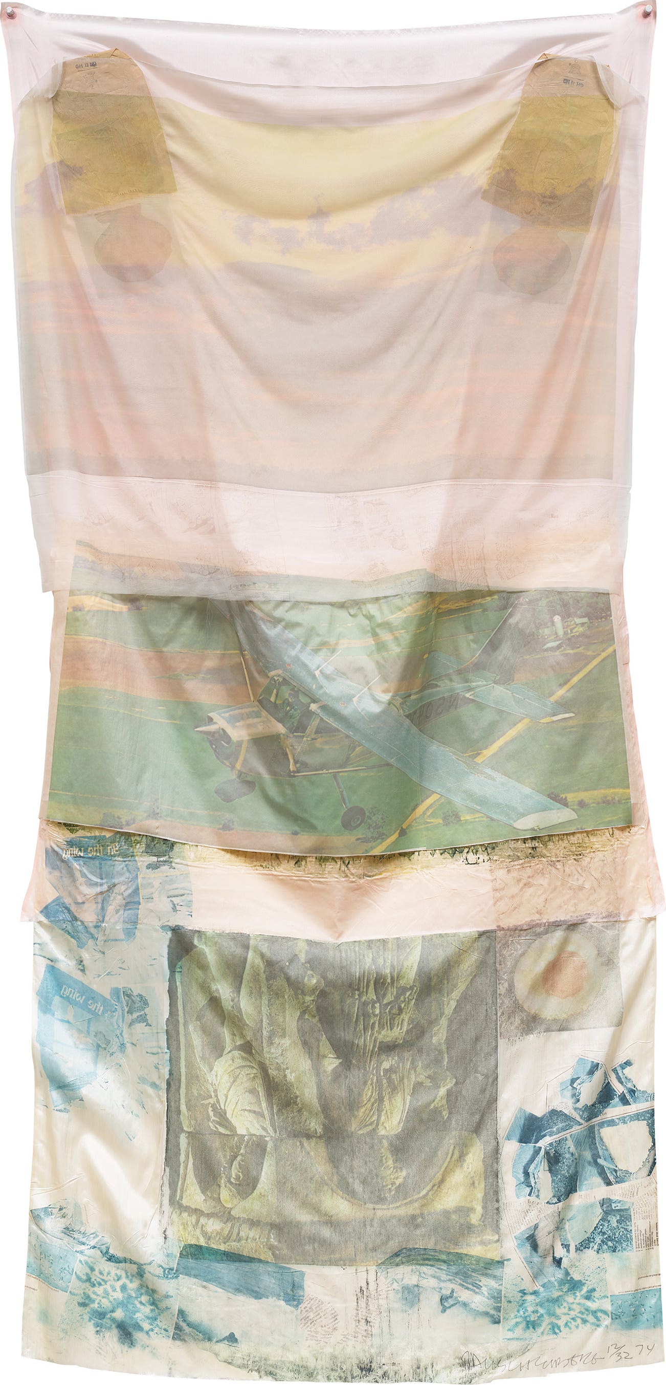 Offset lithograph in colours, on collage of paper bags, China silk, and silk chiffon.