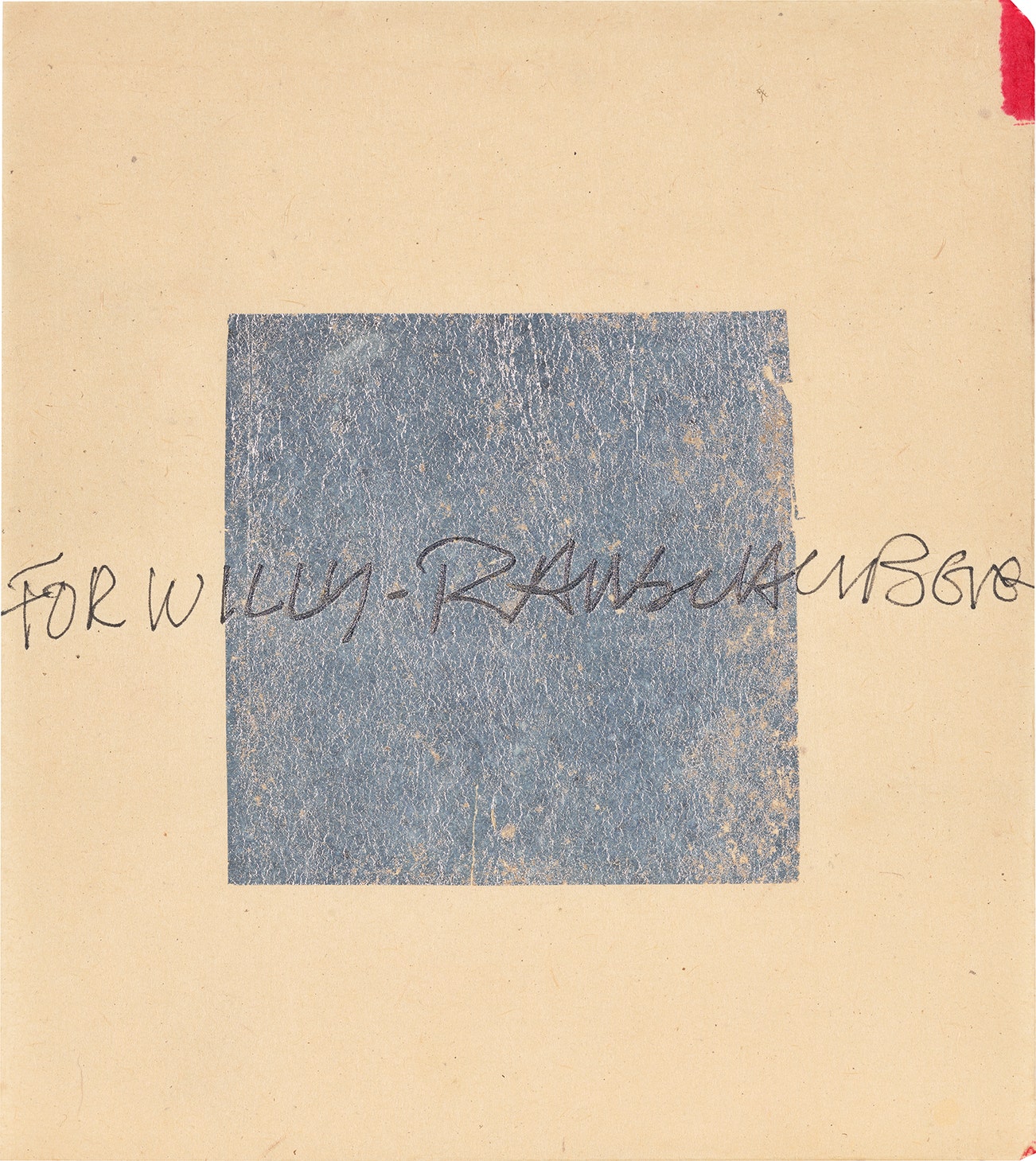 Signed and dedicated 'For Willy' in black ink across the silver foil (dedicated to Robert William Burke), both contained in one frame.