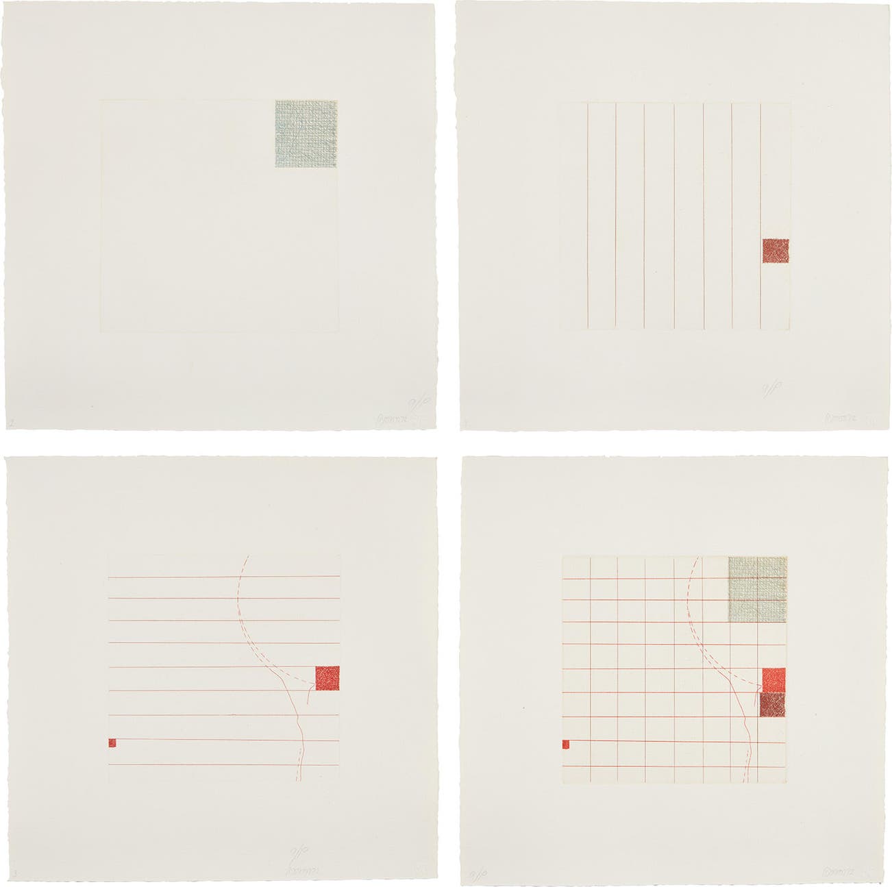 The complete set of four etchings in colors, on Rives BFK paper, with full margins.