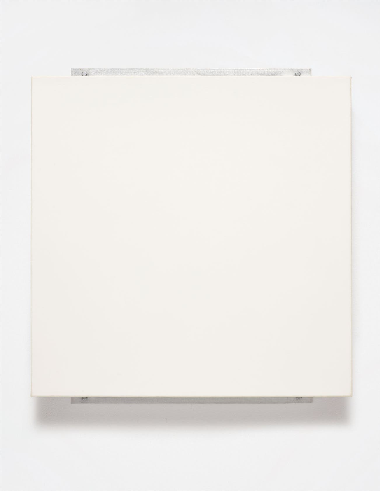 In the same way that Ryman explores white and renders it differently in every painting, the fasteners are also going to vary from work to work in their height (physical prominence), consequently, in their compositional influence. This work further belongs to a larger group of paintings from the same period, when Ryman increased the size of his fiberglass support by attaching a number of panels together, adding an additional element of construction, where the joins between the panels become a compositional element. He would usually use aluminum because it was lighter and because he considered it a “nicer” metal. To achieve this effect he would make technical drawings to figure out a size and scale for each of the works that contained these fasteners. In the case of Sign, 1982 Ryman used Enamelac on the fiberglass and the fasteners were aluminum, alluding again to his continual experimentation of how to render the same theme, typically with a myriad of materials, although for this series he limited himself to Enamelac, oil and acrylic.