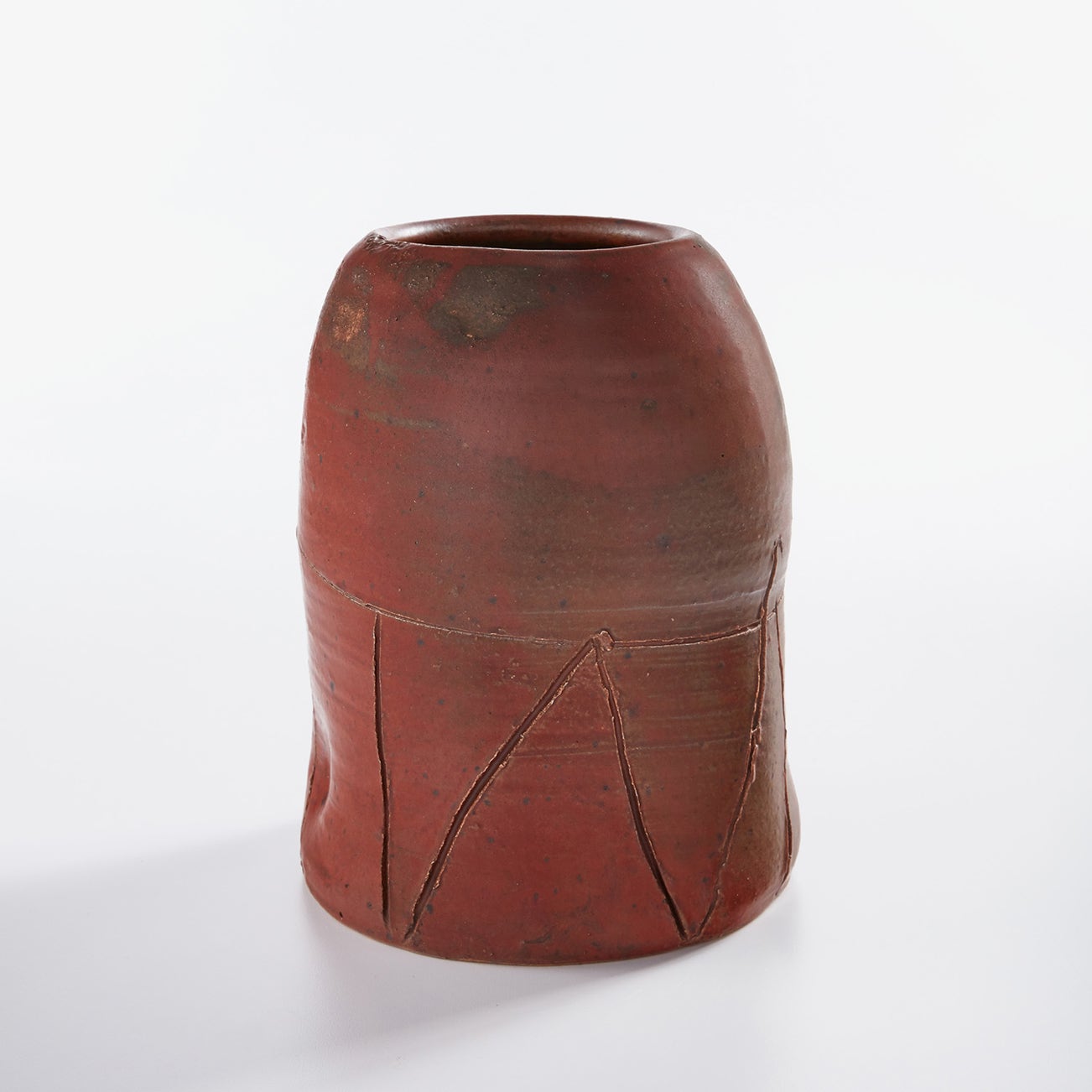 In the catalogue for Robert Turner’s 1986 retrospective, philosopher Kenneth Westphal wrote, “There is nothing accidental or arbitrary in Turner’s pots, and yet there is nothing in them that is forced or contrived. Their combination of necessity and grace is achieved only by Turner’s sensitivity to the materials and structures he uses and to the content they express.” Turner began focusing on abstract vessel forms rather than utilitarian forms in the late 1960s and he often drew inspiration from his various travels across the American Southwest as well as more distant places such as West Africa. He primarily created conical, domed, and cylindrical forms in reds, white, and dark browns, as seen in the present offering, which are all exquisite examples of the artist’s commitment to this restrained vocabulary of forms and palette of glazes. Robert Turner’s work belongs to museum collections including the Los Angeles County Museum of Art and the Philadelphia Museum of Art, among others.