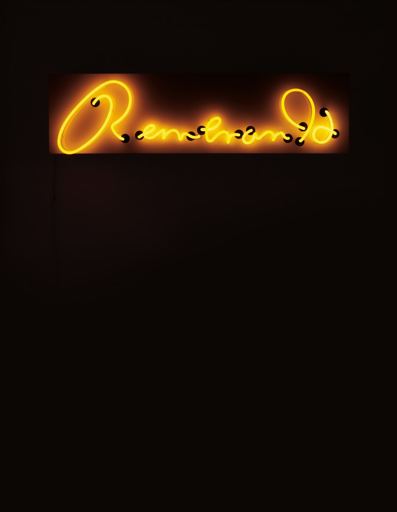 A unique variant from a c.1964-1980s series that included at least one other variant of “Rembrandt” with unique tubing elements as well as other variants that depicted the signatures of other artists, fabricated by Electric Gallery, Toronto.