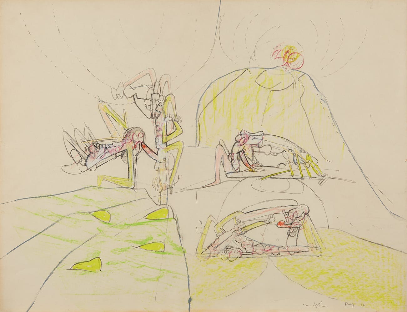 signed, indistinctly inscribed and dated "Roberto Matta 62" lower right