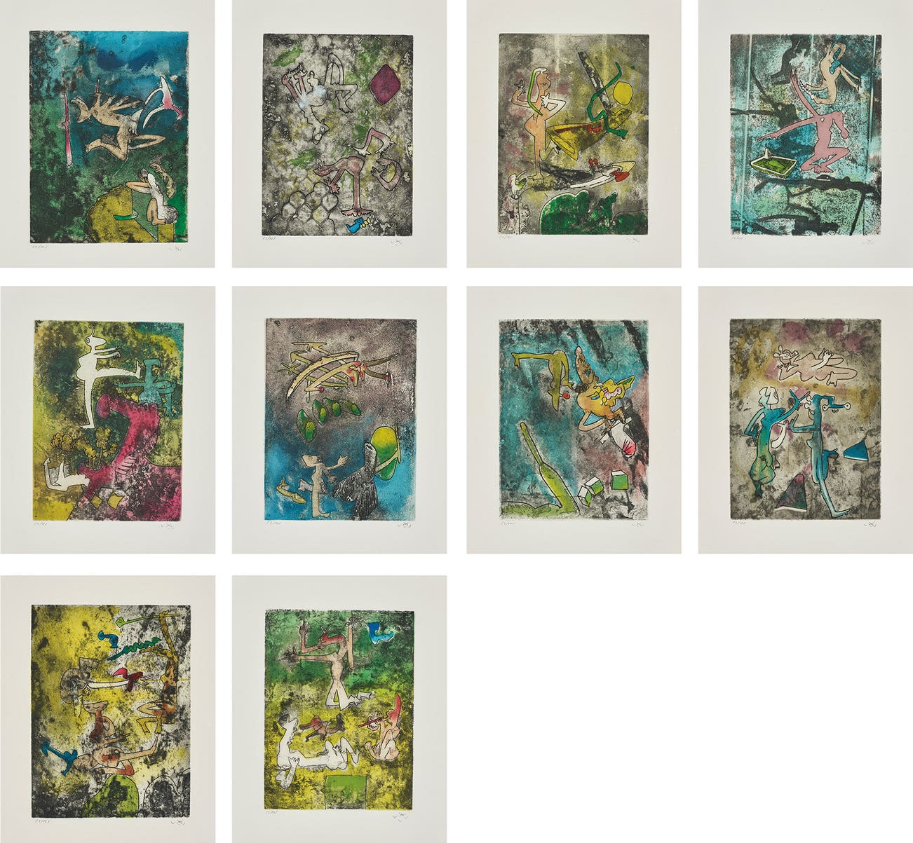 The complete set of ten etching and aquatints in colours, on Arches paper, with full margins, with title page, colophon and poem by Antonin Artaud, the sheets loose (as issued), all contained in the original fabric-covered portfolio.