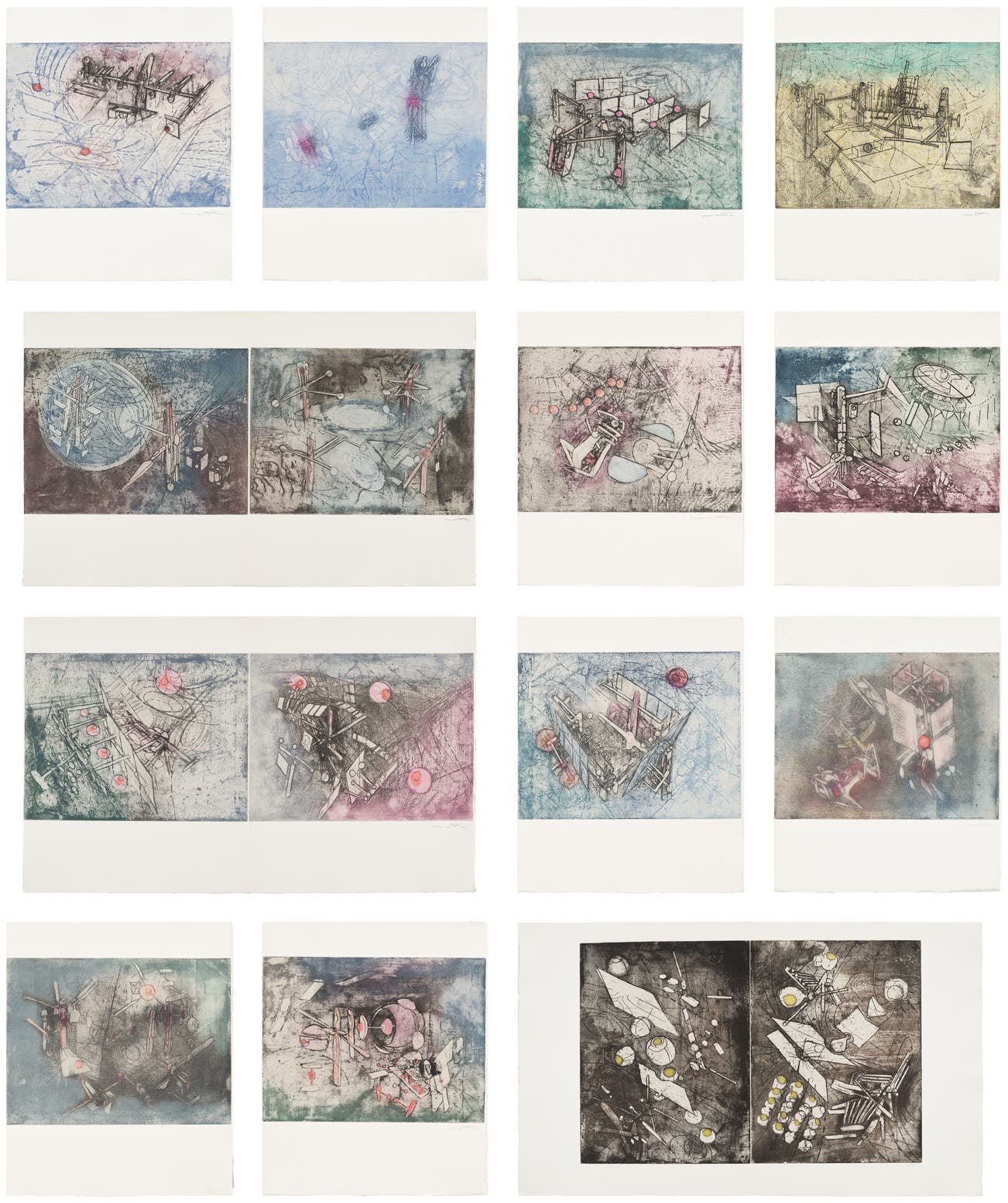 The complete set of 25 etchings with aquatint in colors, on Rives BFK paper, with full margins and the full sheets, with title, partial text and justification pages, all loose and folded (as issued), all contained in the original cloth-covered boards and slipcase.