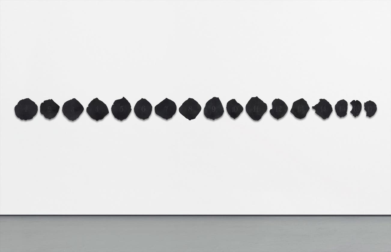 After receiving a traditional artistic education at Escuela de Artes Plásticas Julio Árraga in Maracaibo, Venezuela, Roberto Obregón soon focused his practice on conceptual art. Employing his background as a botanical illustrator, having realized several series of scientific drawings, leaf designs and rose petals would go on to become the emblematic subject matter of his career. Like many conceptual artists of the period, he often used photography to document exercises on observation, as it offered a more analytical approach that went beyond the decorative. During the 1970s, he started producing his first series documenting these plant studies using watercolor. He then began to dissect rose petals, gluing them sequentially on paper, constantly arranging and re-arranging them in a myriad of painstaking patterns resembling scientific diagrams. The present lot, Pétalos, 1993, is a prime example of the different unique spinoffs of his delicate petal dissections, where he cuts silhouettes of petals from sheets of rubber and organizes them in seemingly sequential patterns. In this way, the present lot is exemplary of Obregón’s methodical depiction of nature relating to time. The viewer is encouraged to move in a linear direction while experiencing the work, rather than looking at it from a