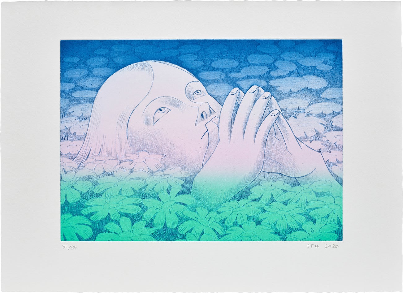 She has presented solo exhibitions at P·P·O·W, New York, NY; Various Small Fires, Los Angeles, CA; Bard College at Simon’s Rock, Great Barrington, MA; and Jack the Pelican Presents, Brooklyn, NY. Her work has been featured in numerous group exhibitions nationally and internationally including Present Generations, Columbus Museum of Art, Columbus, OH; Bitter Nest, Galerie Perrotin, Tokyo, Japan; XENIA: Crossroads in Portrait Painting, Marianne Boesky Gallery, New York, NY; Nicolas Party: Pastel, Flag Art Foundation, New York, NY; SEED, curated by Yvonne Force, Paul Kasmin Gallery, New York, NY; and more. Her work is currently in the permanent collections of the Brooklyn Museum, Brooklyn, NY; Collection Majudia, Montreal, Canada; Columbus Museum of Art, Columbus, OH; Institute of Contemporary Art, Miami, FL; X Museum, Beijing, China; among others. Her work was recently on view at the Institute of Contemporary Art, Miami, FL in Fire Figure Fantasy: Selections from ICA Miami’s Collection.