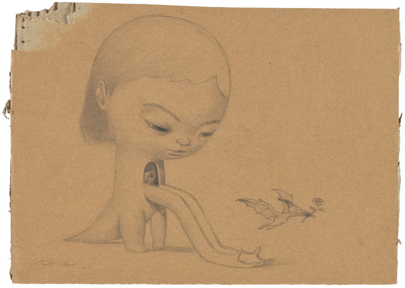 Unique graphite drawing, on cardboard.