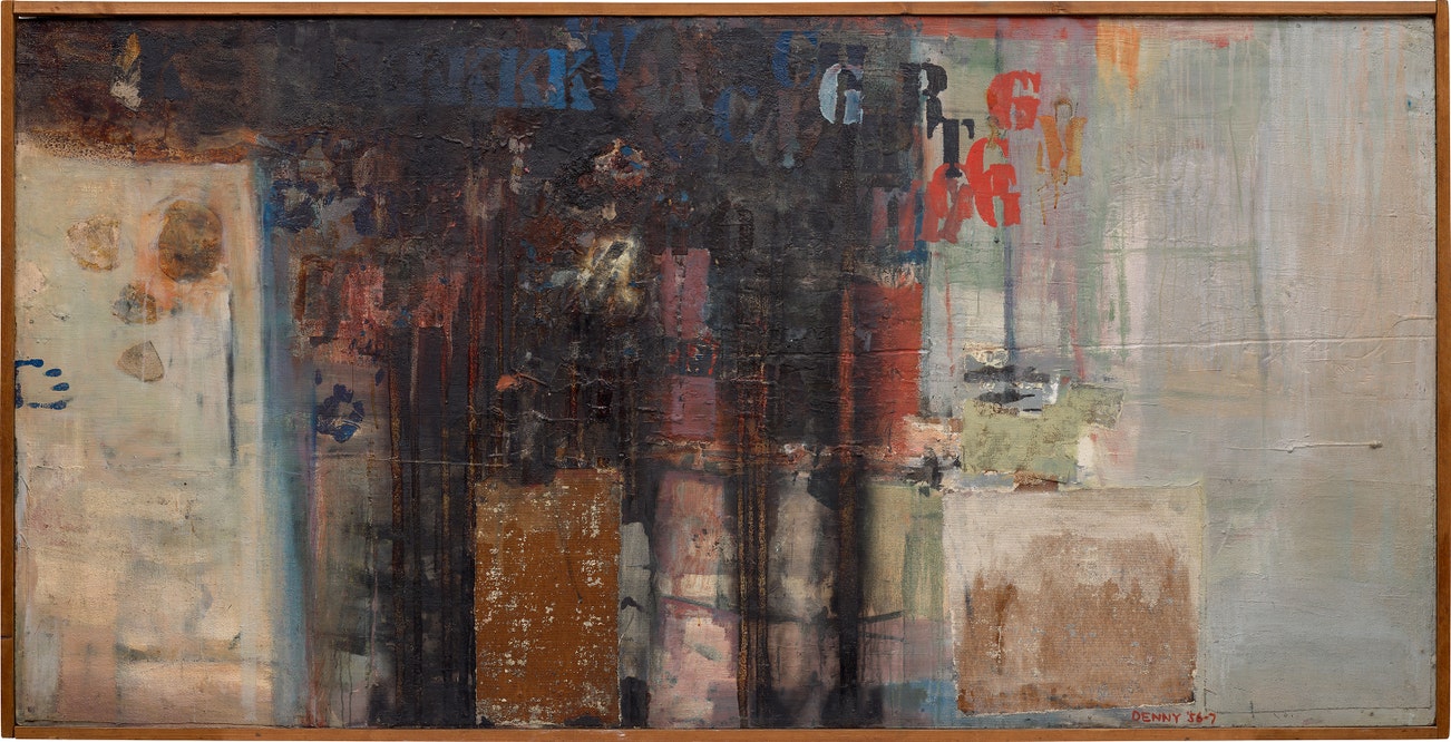 signed and dated 'DENNY '56-7' lower right; signed and inscribed 'DENNY Rome & Abbey scholarship in painting.' on the reverse