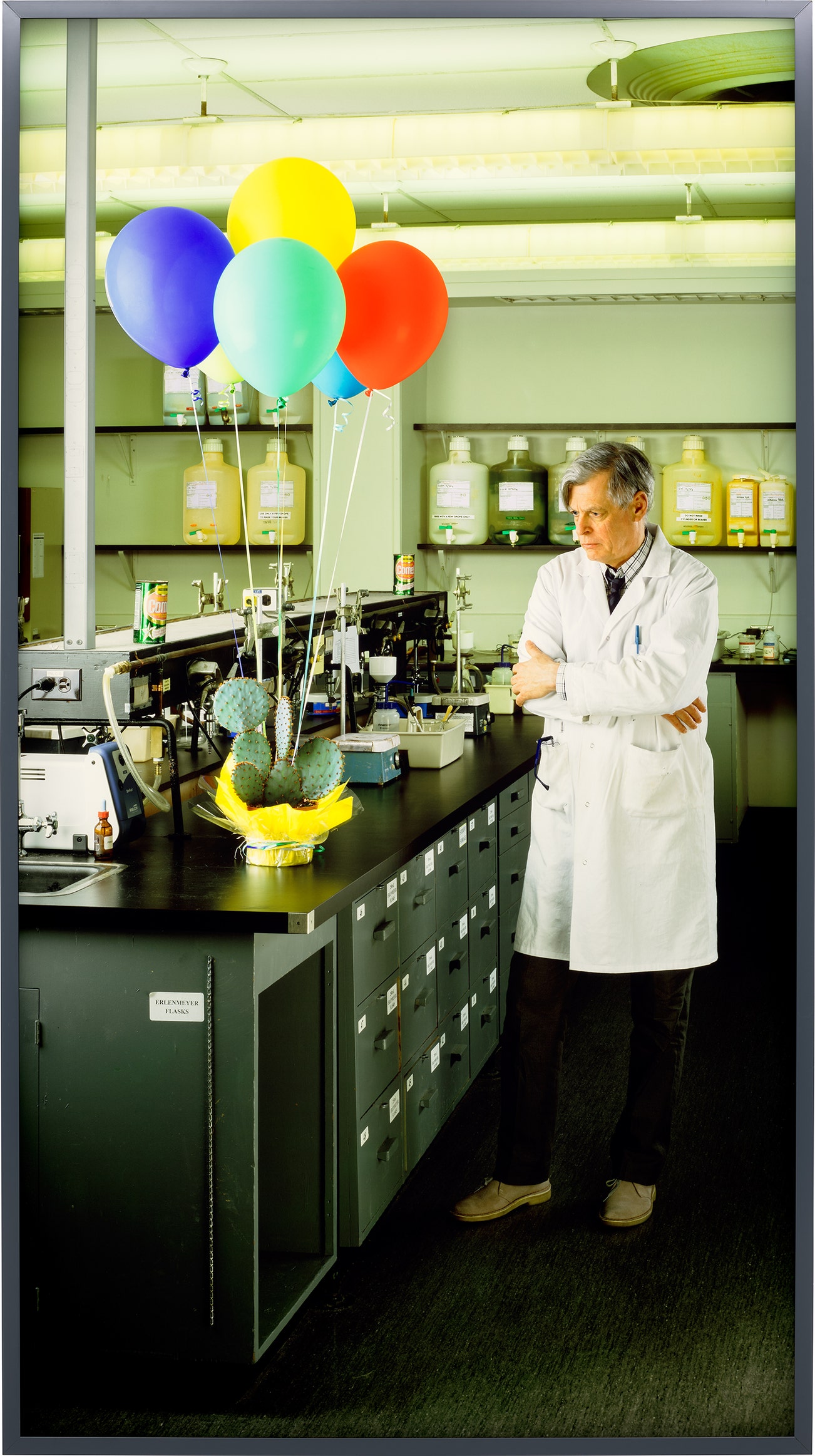 In his film trilogy Vexation Island (1999), How I Became a Ramblin' Man (1999) and City Self/Country Self (2001), the artist plays characters like a castaway and a cowboy caught in repetitive cycles of actions and gestures. Such unconscious dream states are further explored in Graham's series of upside-down photographs of oak trees, which are hung to mimic camera obscura.