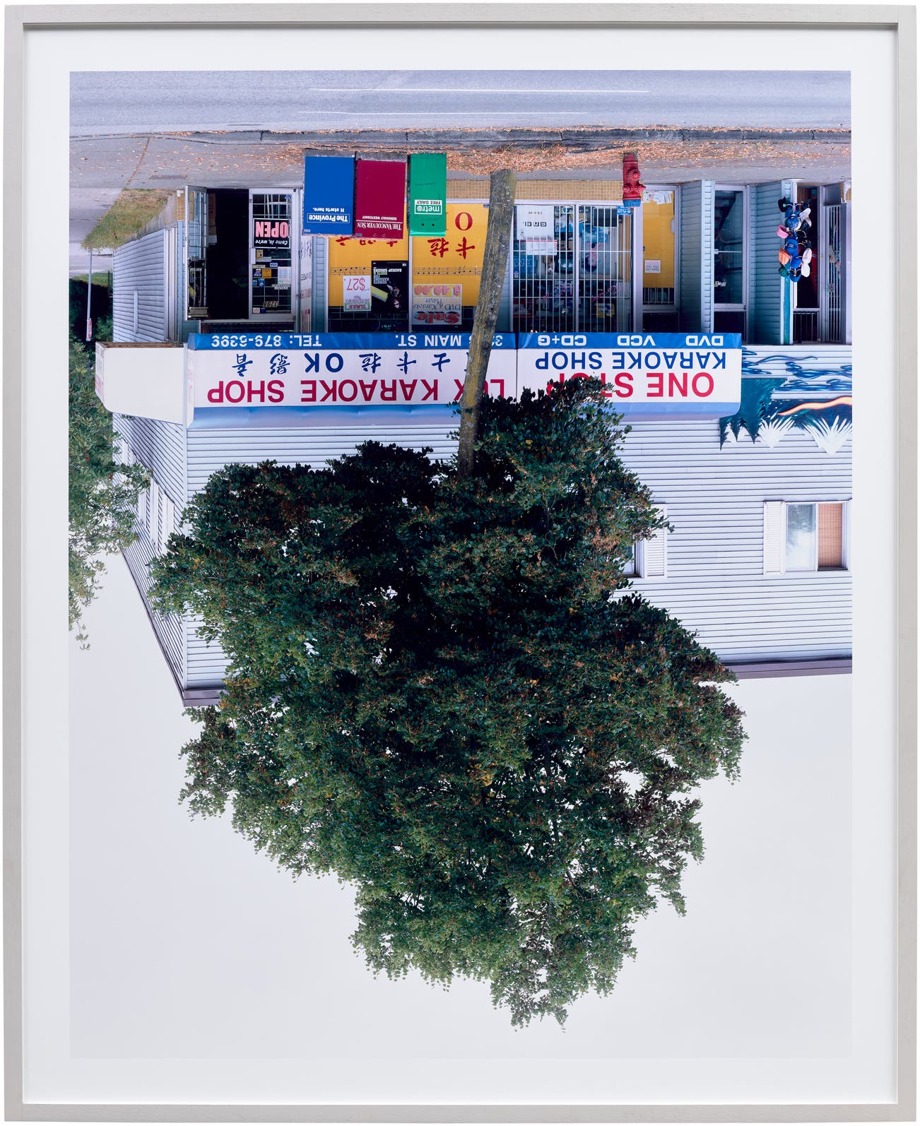 In his film trilogy Vexation Island (1999), How I Became a Ramblin' Man (1999) and City Self/Country Self (2001), the artist plays characters like a castaway and a cowboy caught in repetitive cycles of actions and gestures. Such unconscious dream states are further explored in Graham's series of upside-down photographs of oak trees, which are hung to mimic camera obscura.