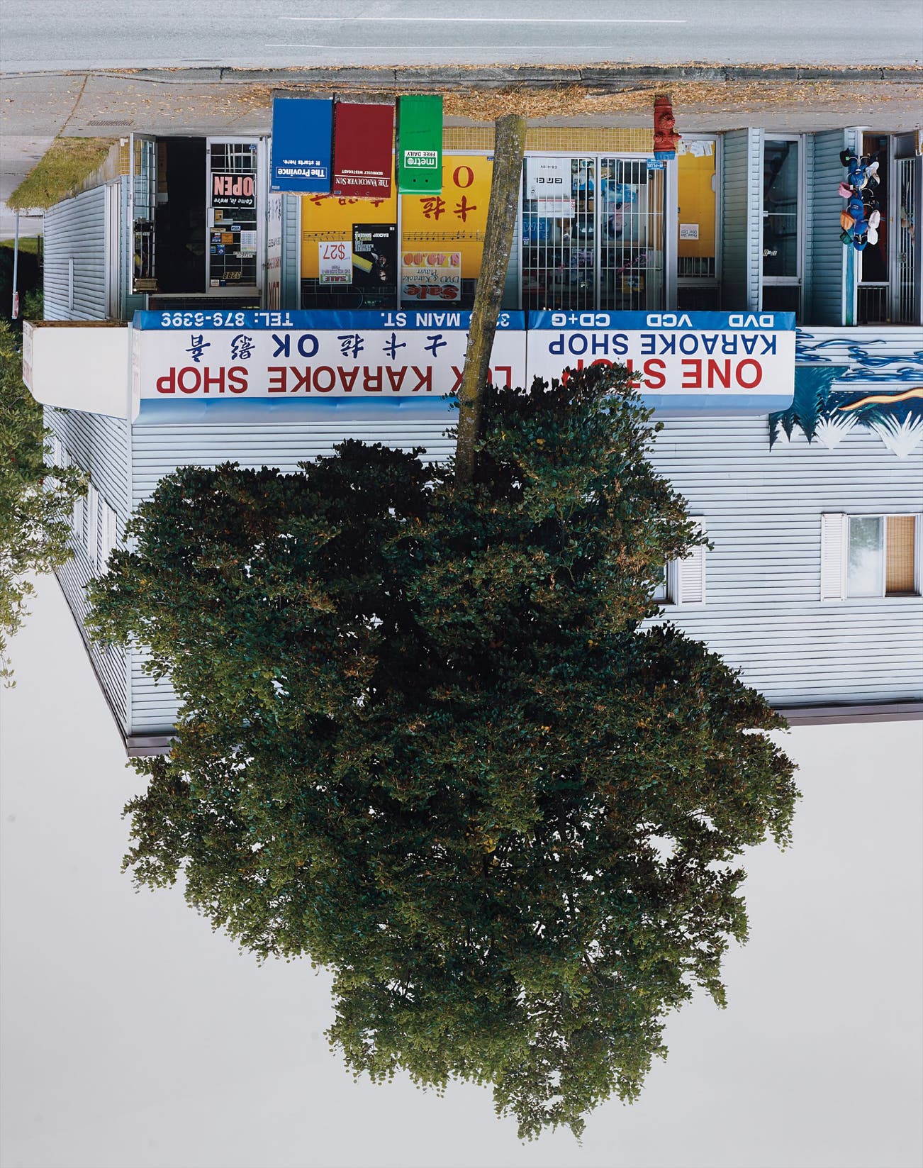 In his film trilogy Vexation Island (1999), How I Became a Ramblin' Man (1999) and City Self/Country Self (2001), the artist plays characters like a castaway and a cowboy caught in repetitive cycles of actions and gestures. Such unconscious dream states are further explored in Graham's series of upside-down photographs of oak trees, which are hung to mimic camera obscura.