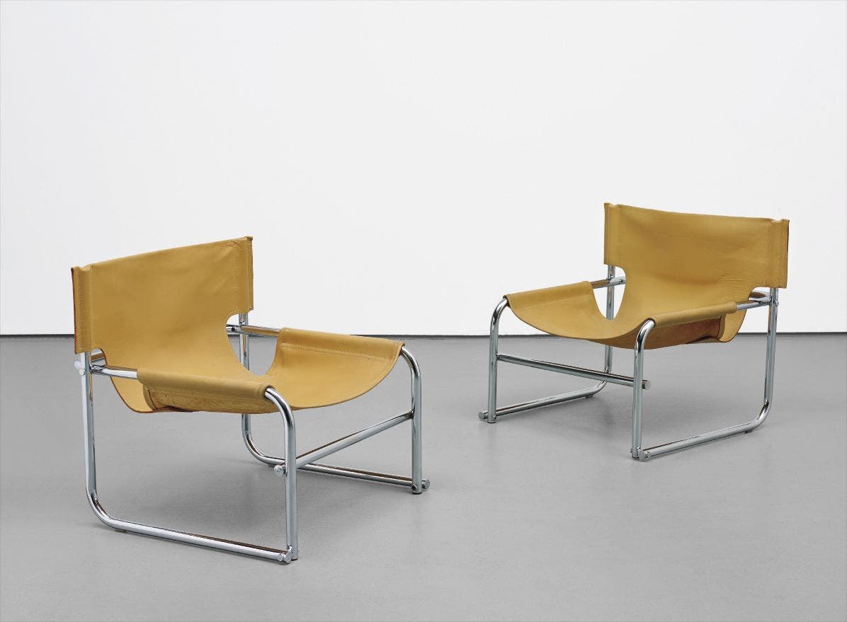 Chromium-plated tubular metal, leather.