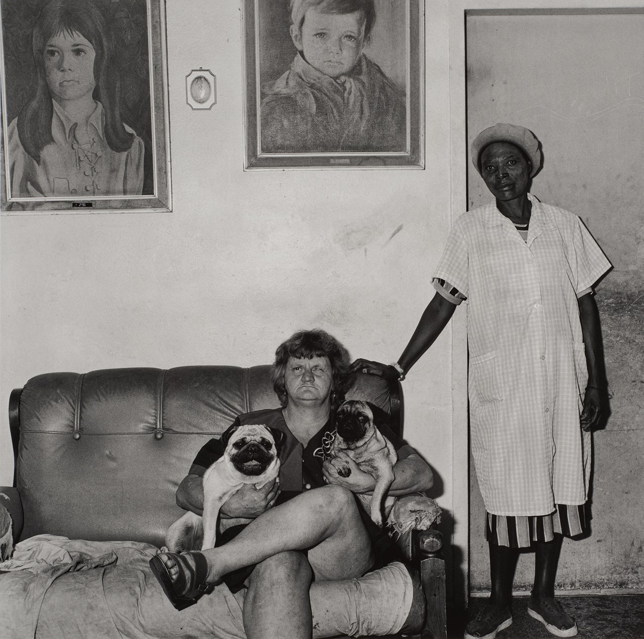 Portrait of Joan with her pugs and Lilian