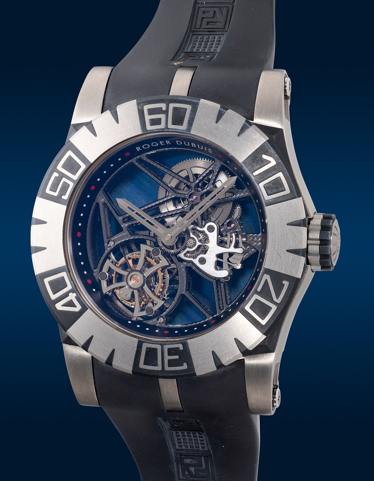 A very fine and unique titanium skeletonized diver’s wristwatch with flying tourbillon escapement and bi-directional bezel, numbered 01