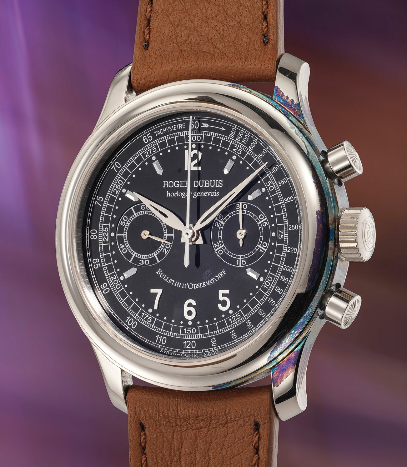 Based on the Lemania 2310, the present Roger Dubuis chronograph is an early example made before the brand's sale to Richemont. First and foremost a watchmaker, Roger Dubuis had tirelessly worked for brands such as Patek Philippe and Longines, before setting up his own workshop.